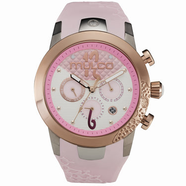 Presentamos el nuevo Mulco Lady D, un reloj sofisticado con correa de silicona resistente y elegante. Su diseño combina tweed, bordados, perlas y detalles en oro rosado, convirtiéndolo en la pieza ideal para el uso diario.