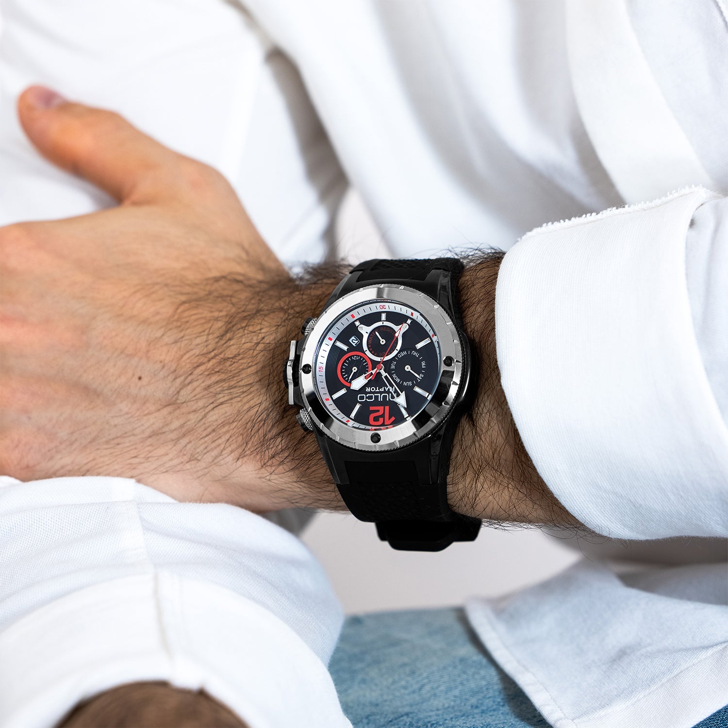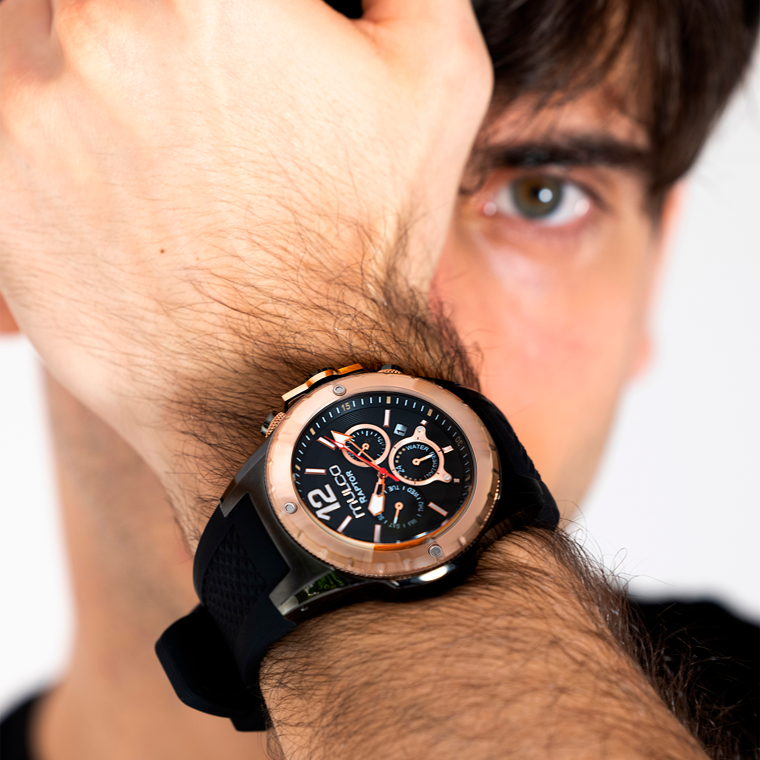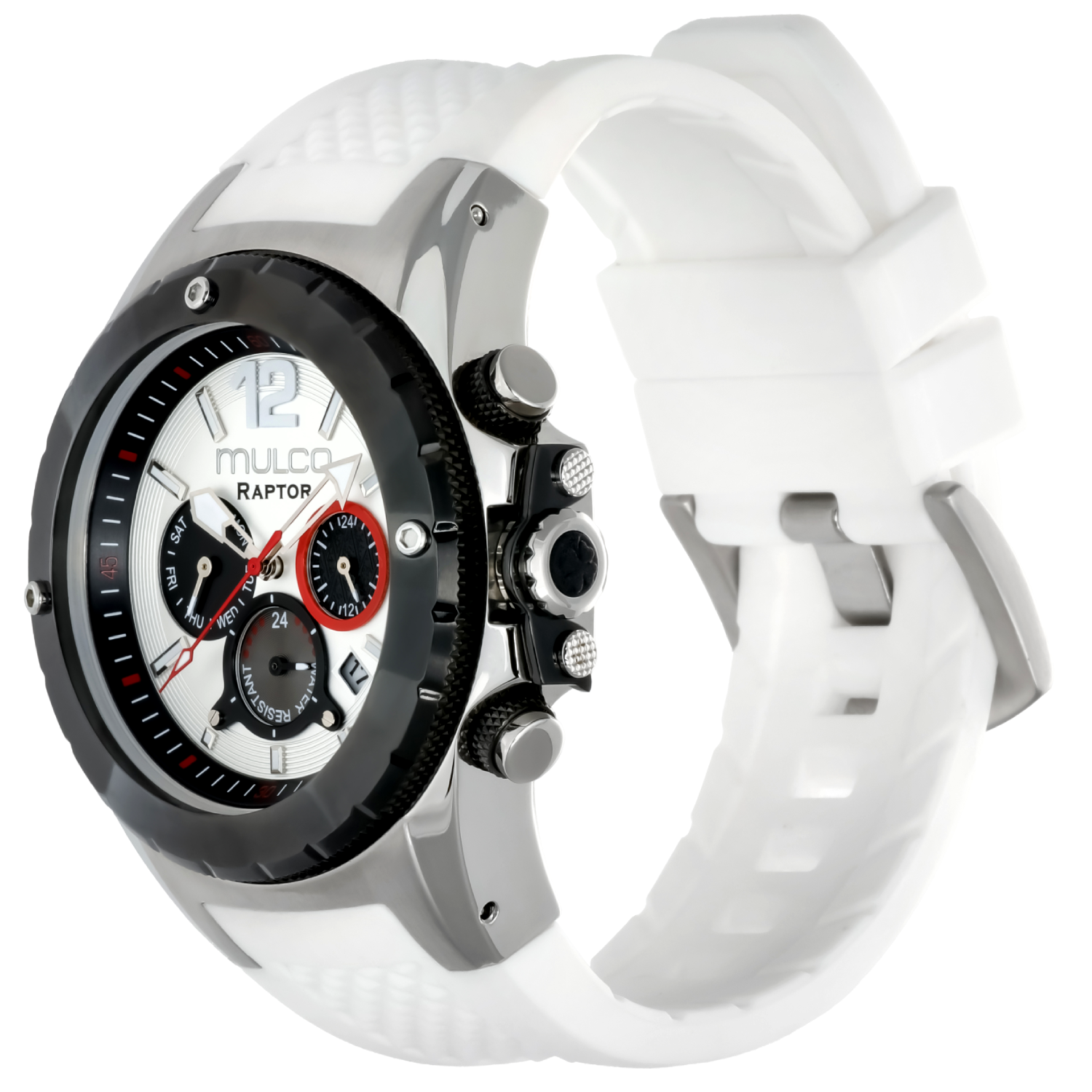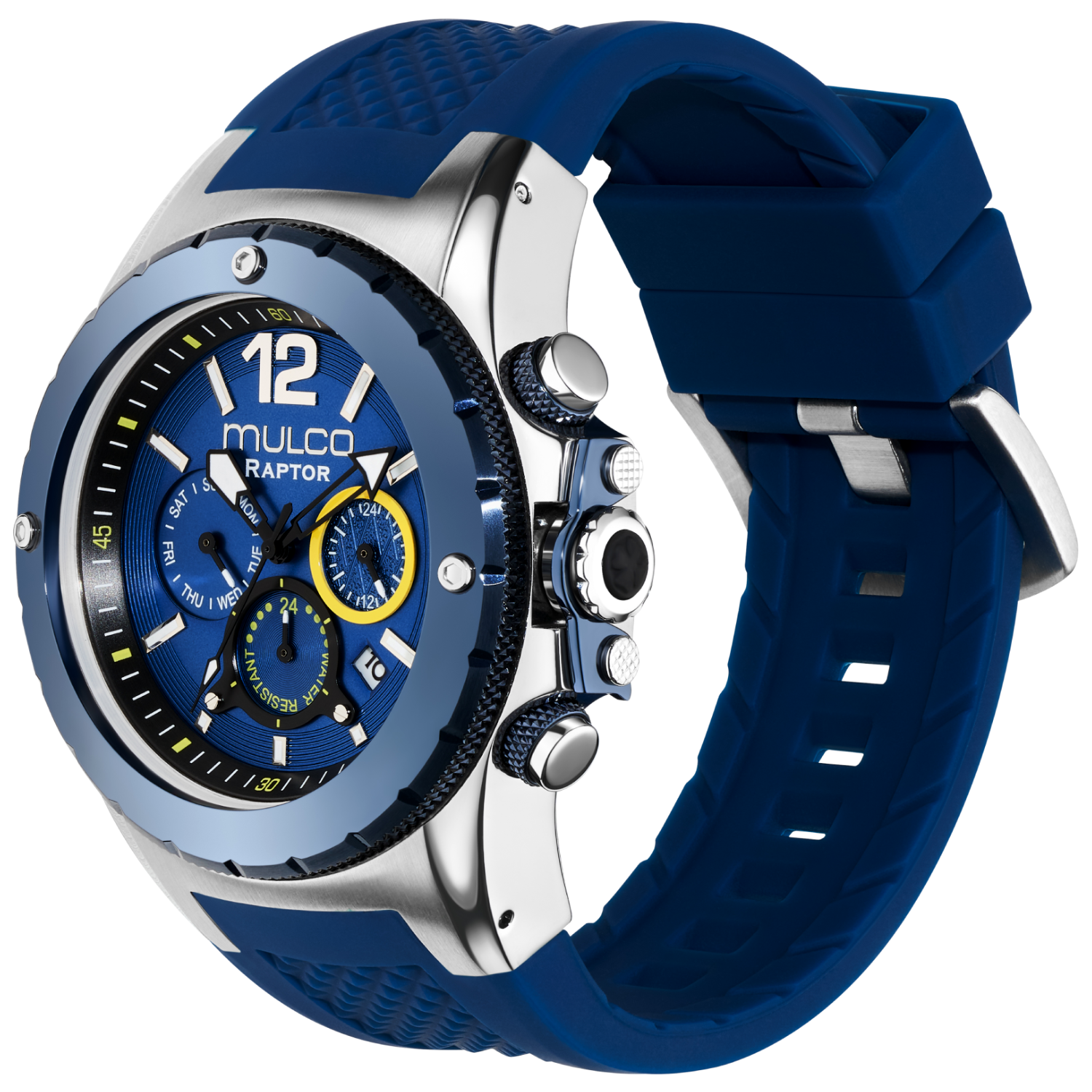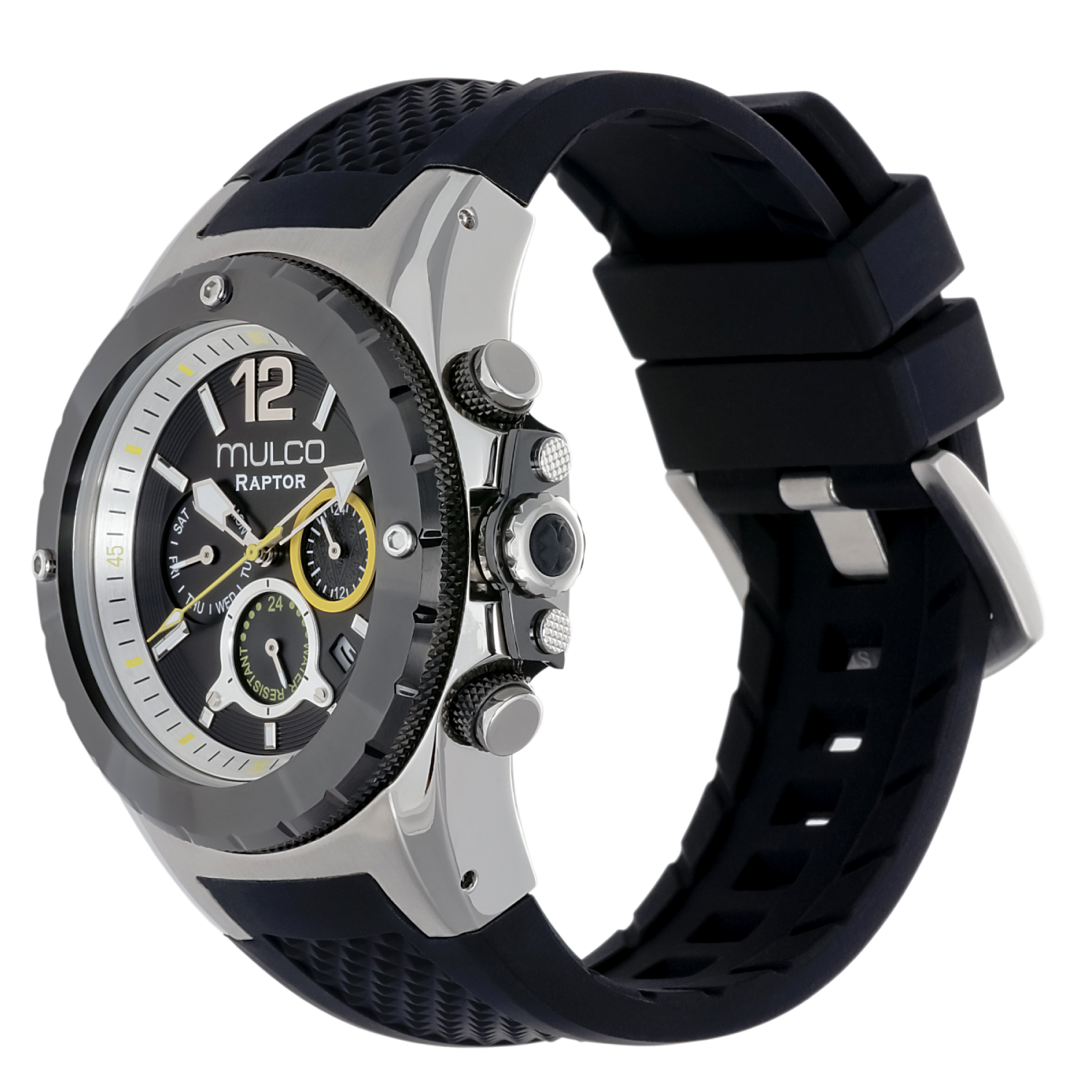 Potente y elegante, el reloj para hombre de Mulco ofrece un diseño robusto con detalles de acero inoxidable y una resistencia al agua de hasta 100 metros. Perfecto para cualquier aventura.