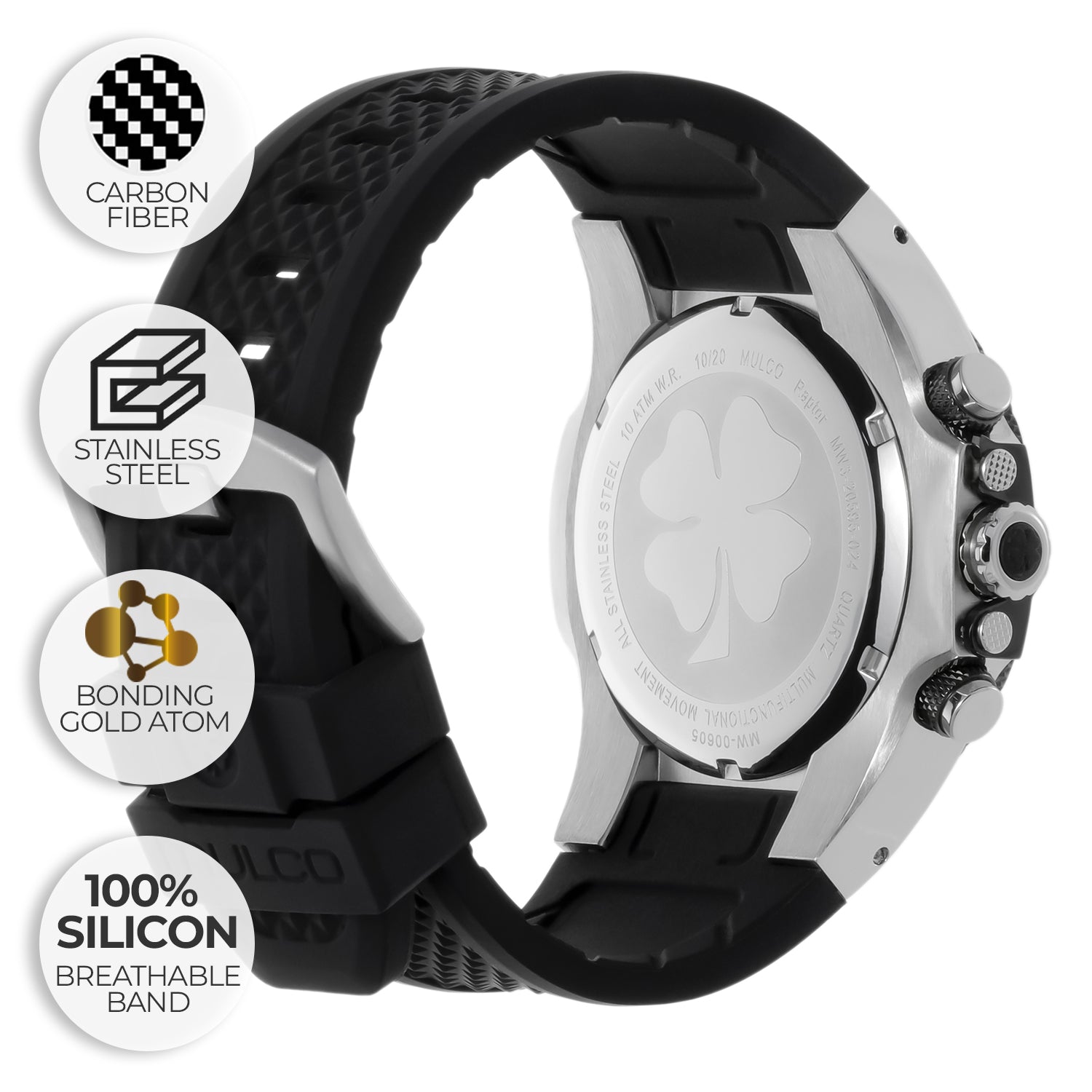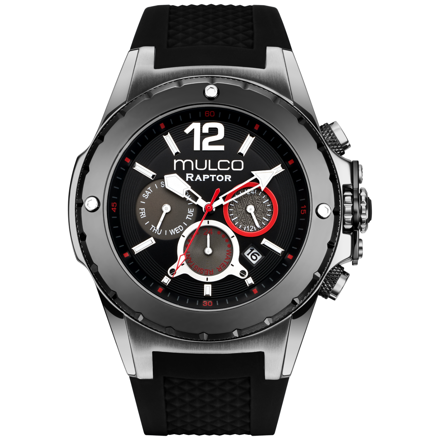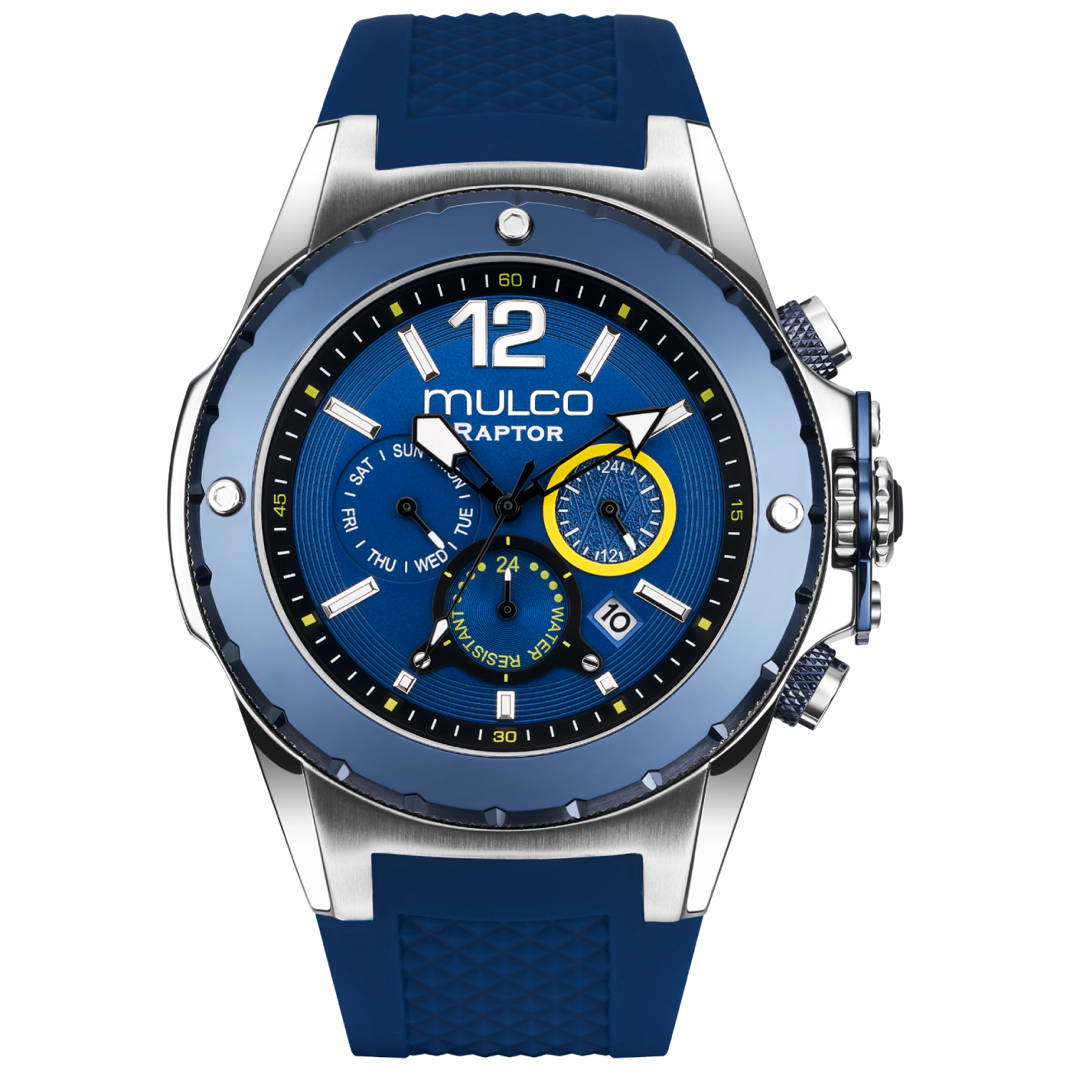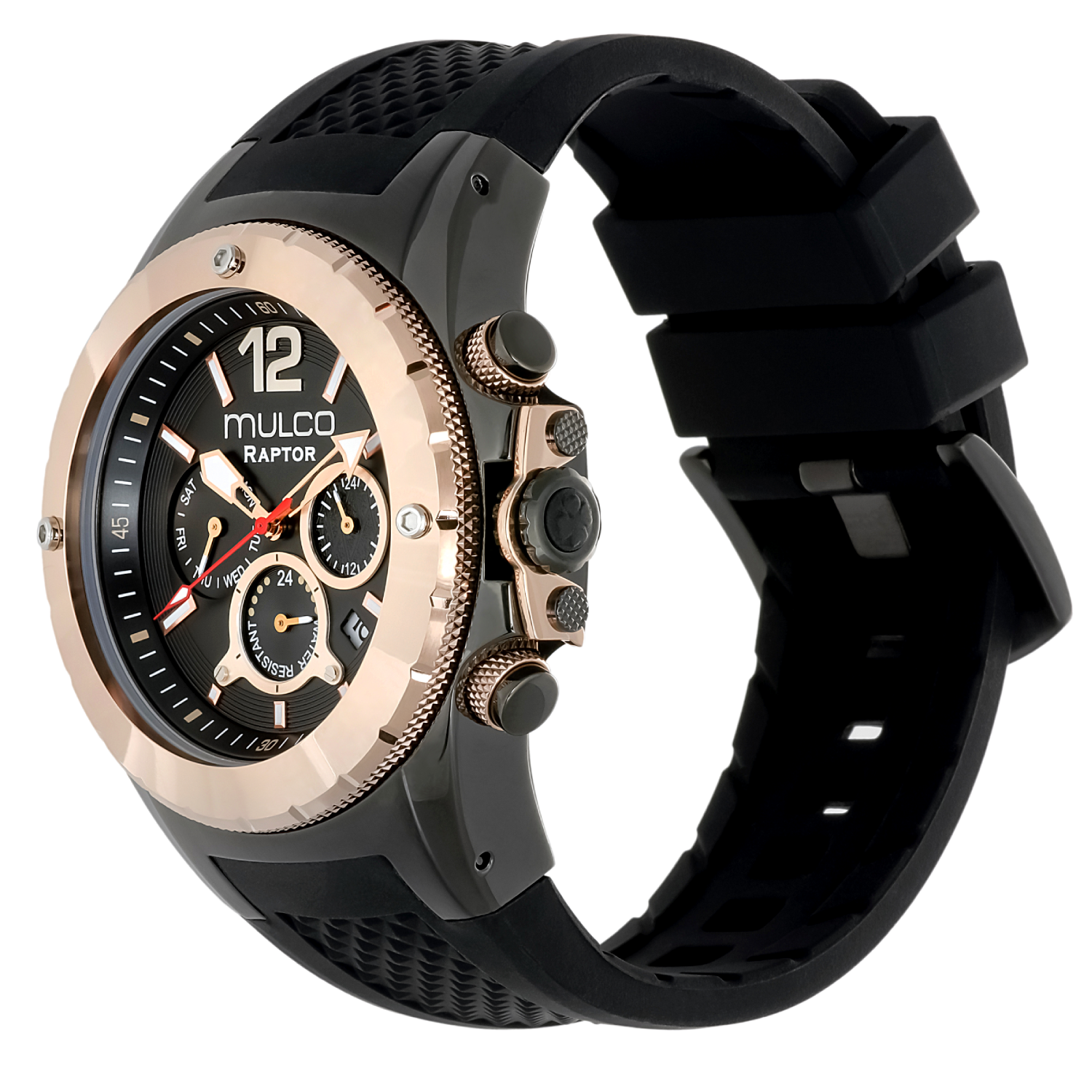 Potente y elegante, el reloj para hombre de Mulco ofrece un diseño robusto con detalles de acero inoxidable y una resistencia al agua de hasta 100 metros. Perfecto para cualquier aventura.