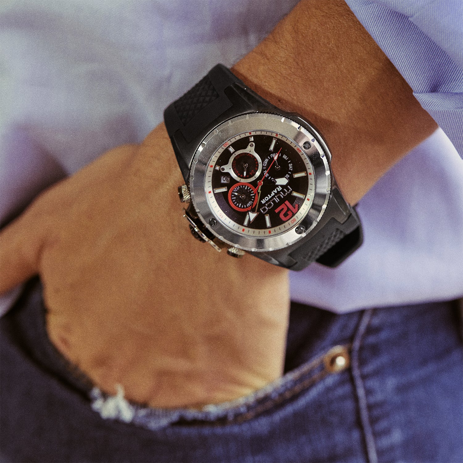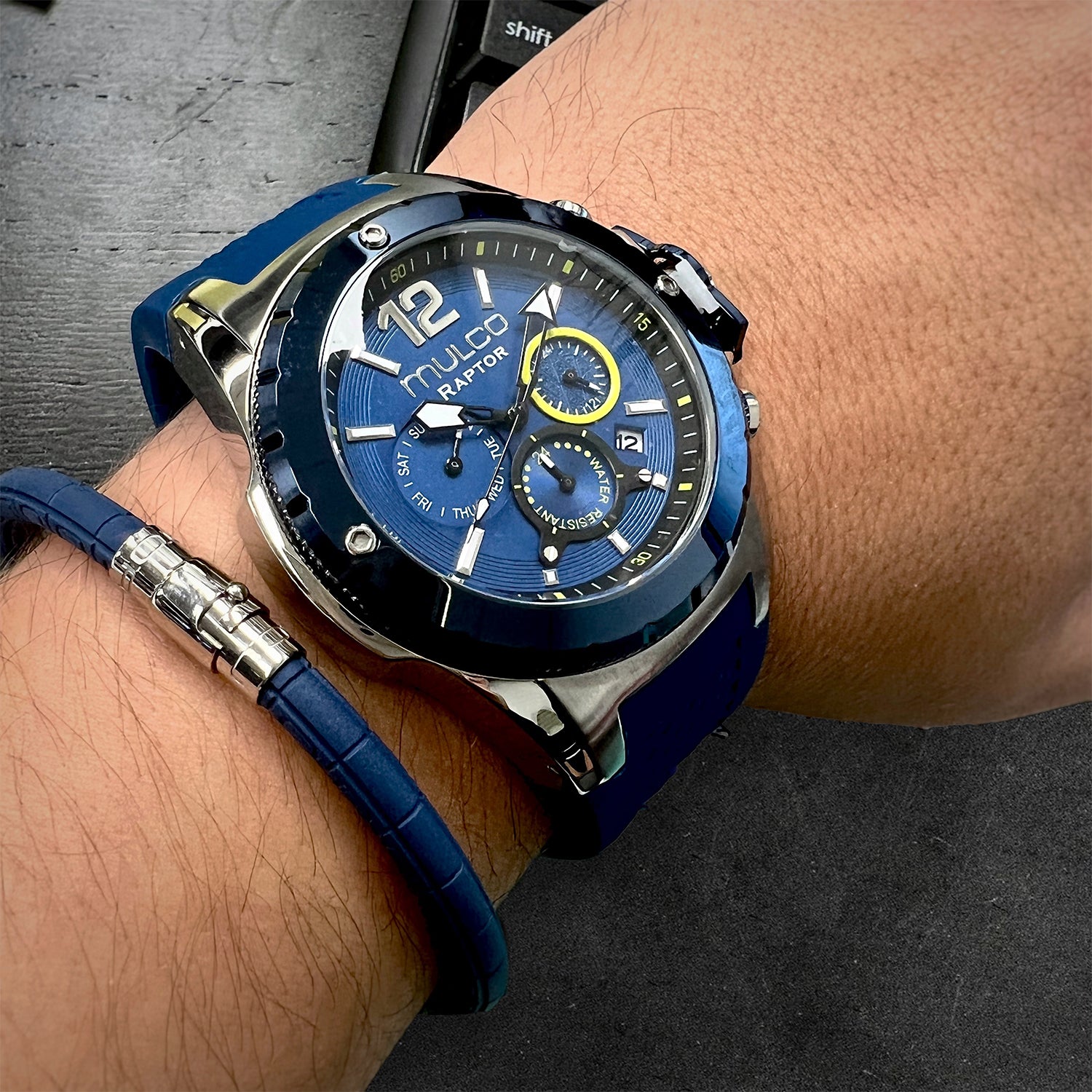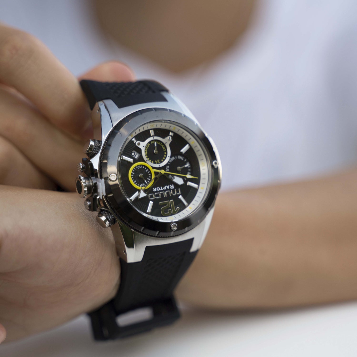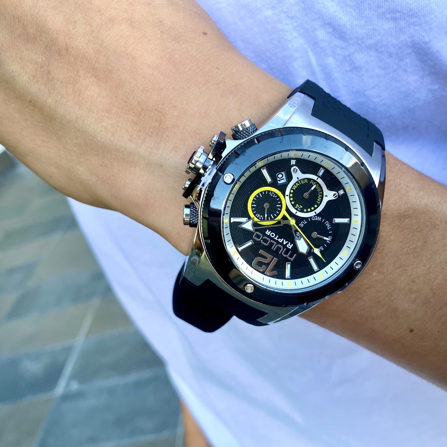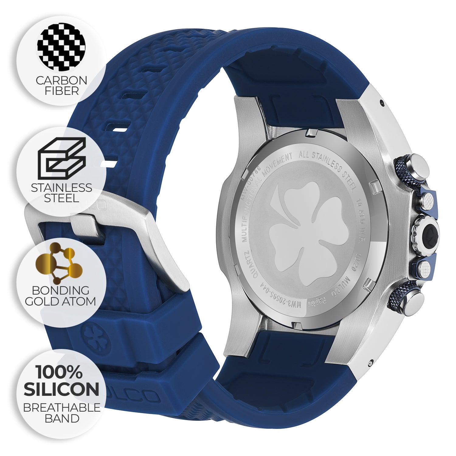 Potente y elegante, el reloj para hombre de Mulco ofrece un diseño robusto con detalles de acero inoxidable y una resistencia al agua de hasta 100 metros. Perfecto para cualquier aventura.