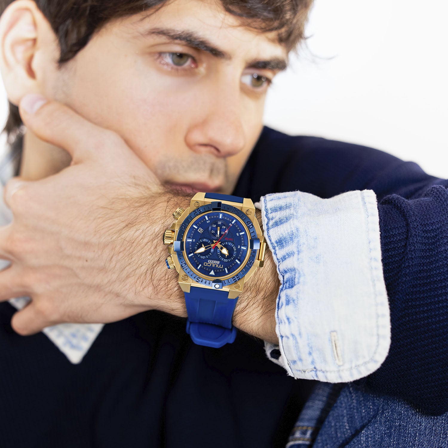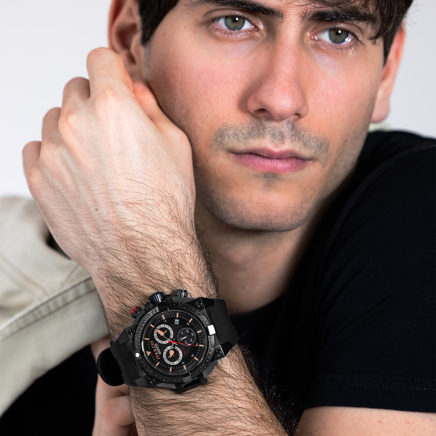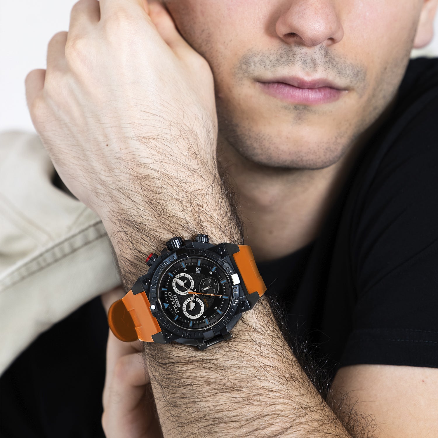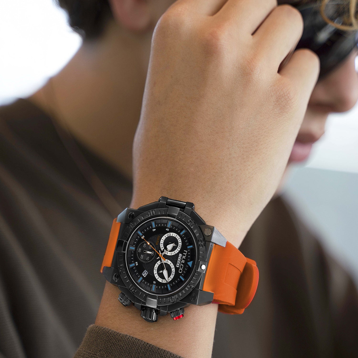 Con correa de silicona, está diseñado para satisfacer las necesidades de los buceadores con un estilo elegante y aventurero. Con una resistencia al agua de 10 ATM, estos relojes con movimiento cronógrafo son ideales para tus aventuras acuáticas