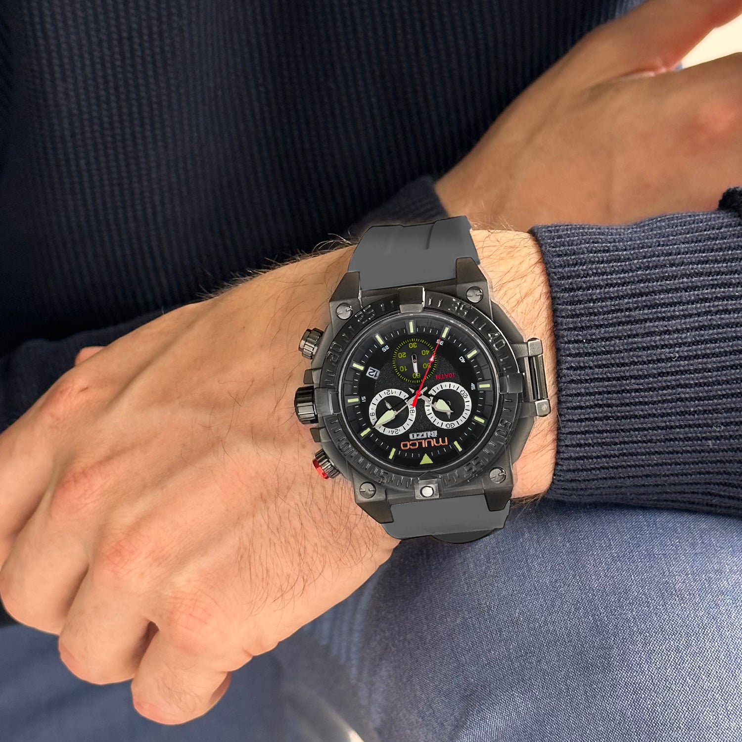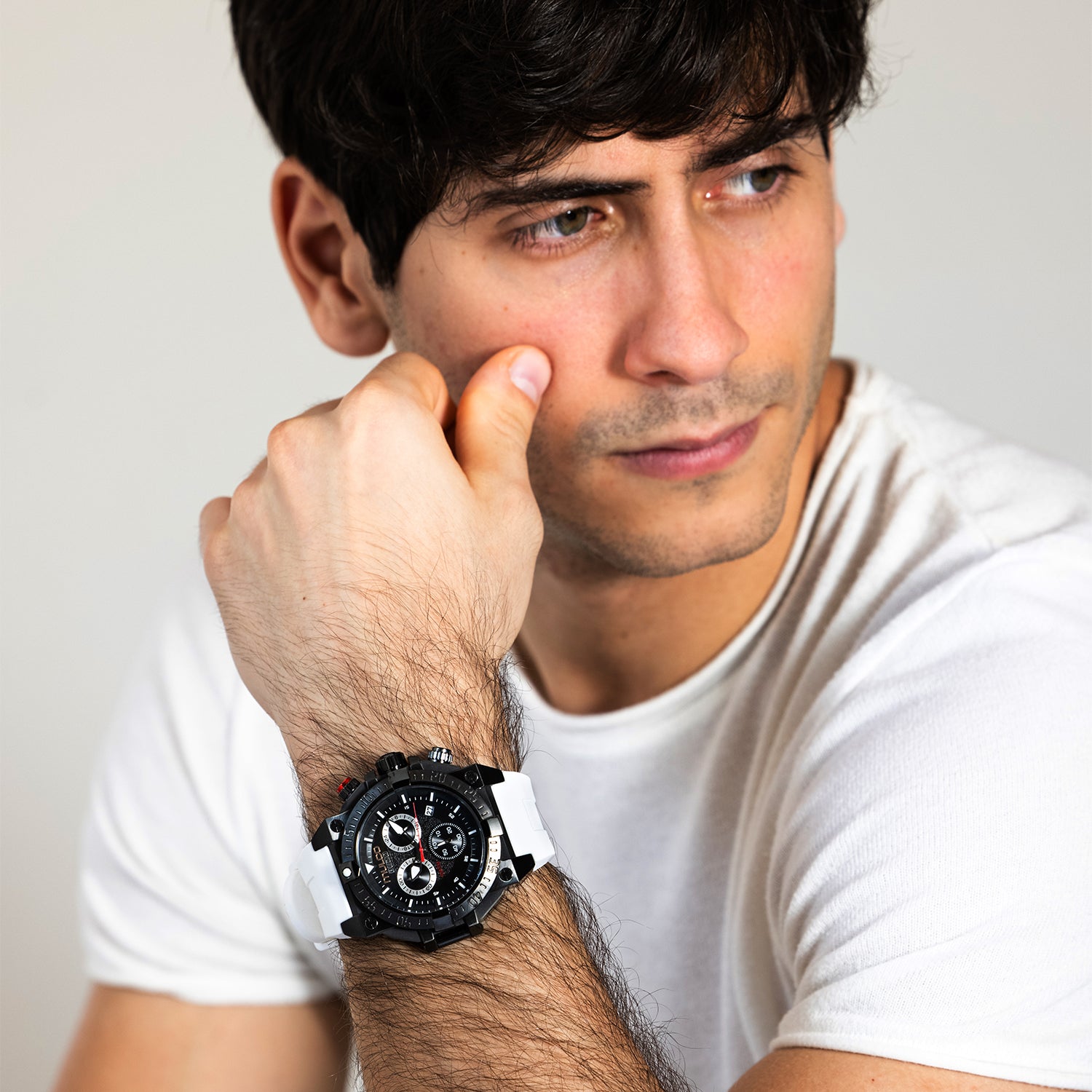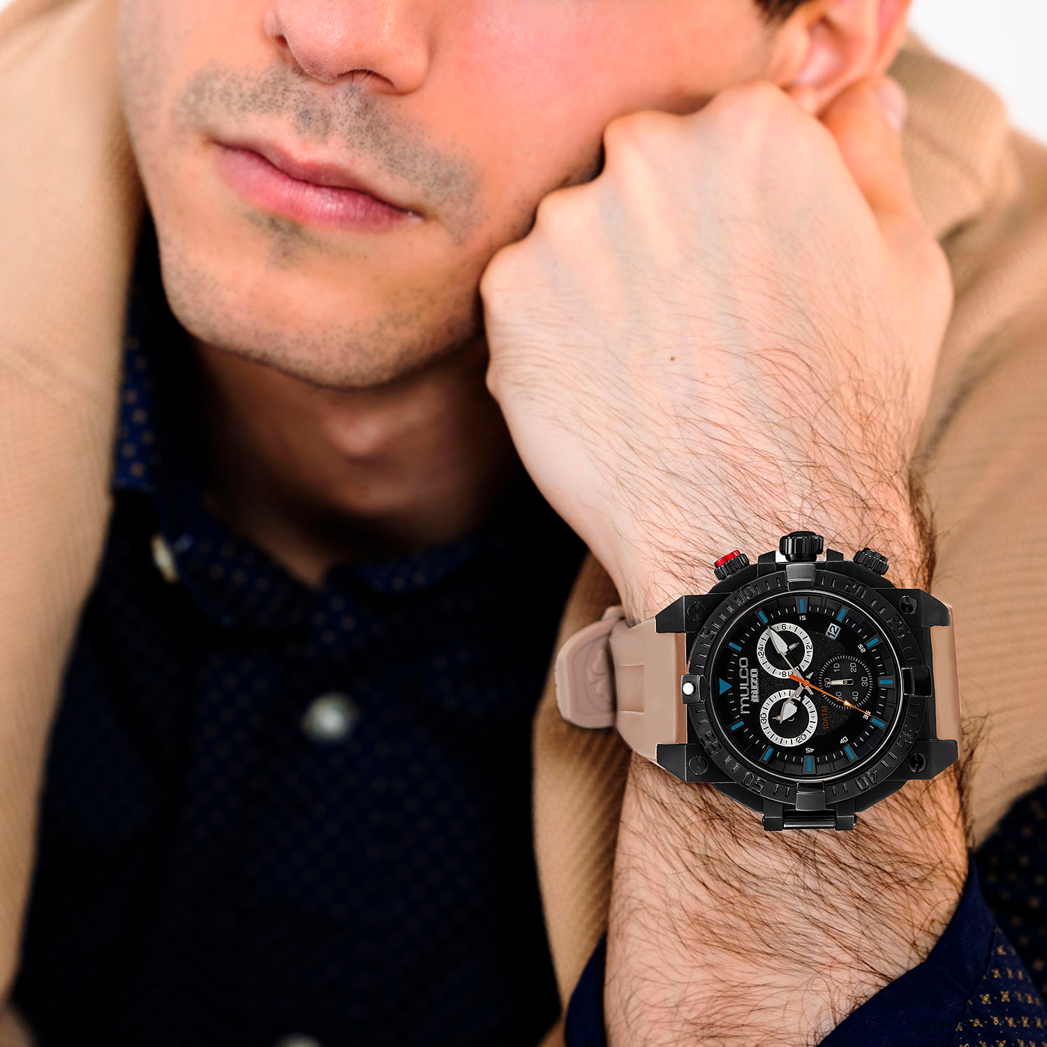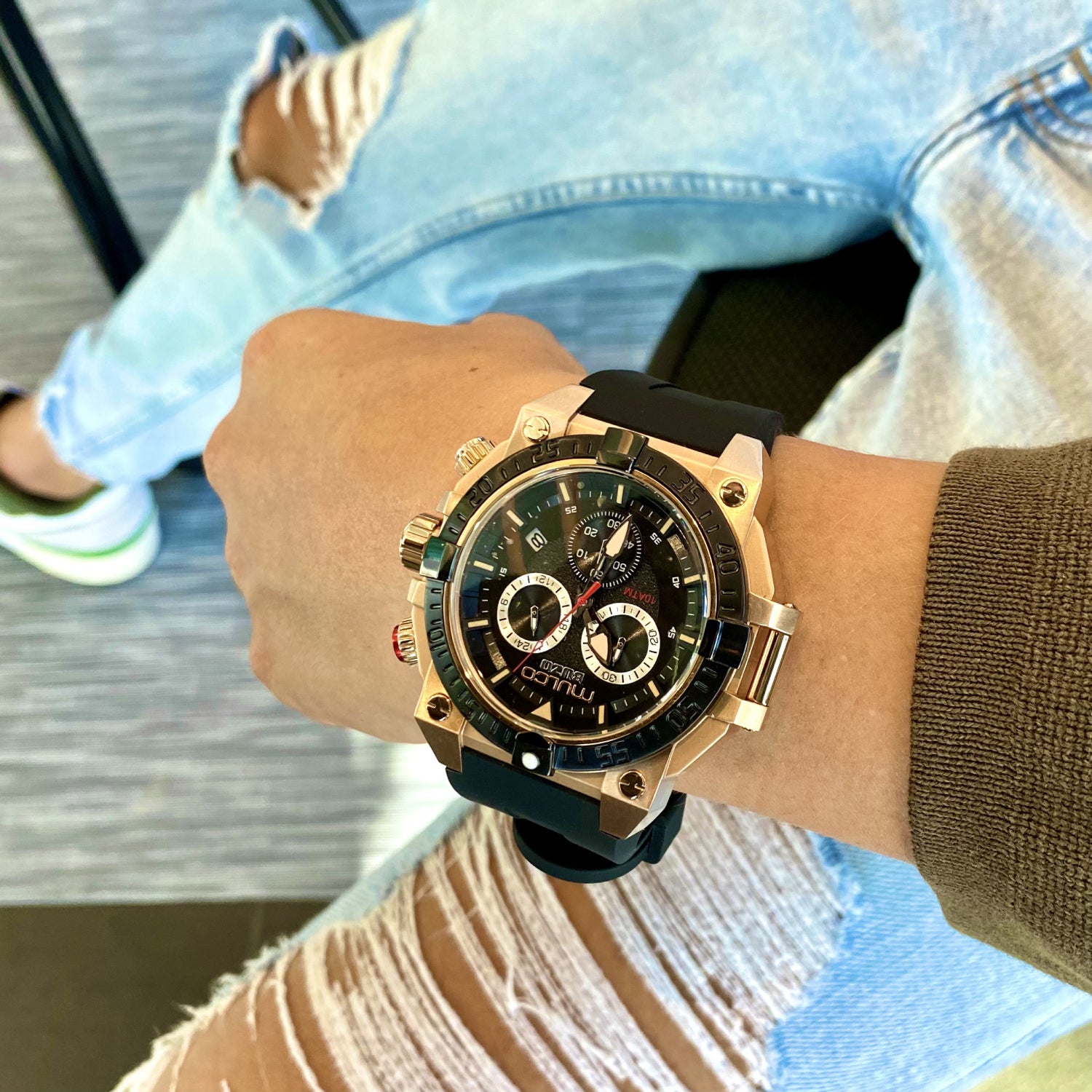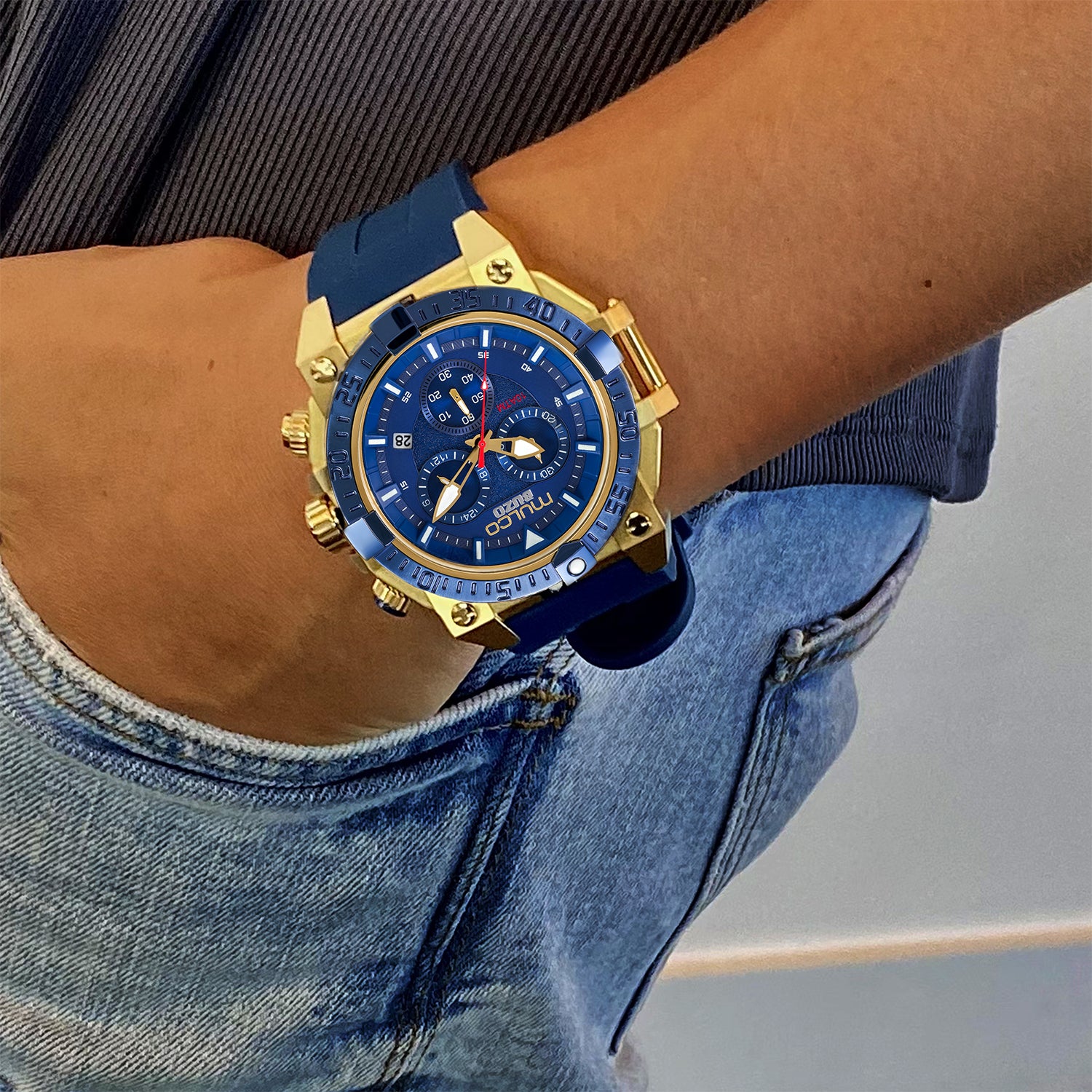 Con correa de silicona, está diseñado para satisfacer las necesidades de los buceadores con un estilo elegante y aventurero. Con una resistencia al agua de 10 ATM, estos relojes con movimiento cronógrafo son ideales para tus aventuras acuáticas
