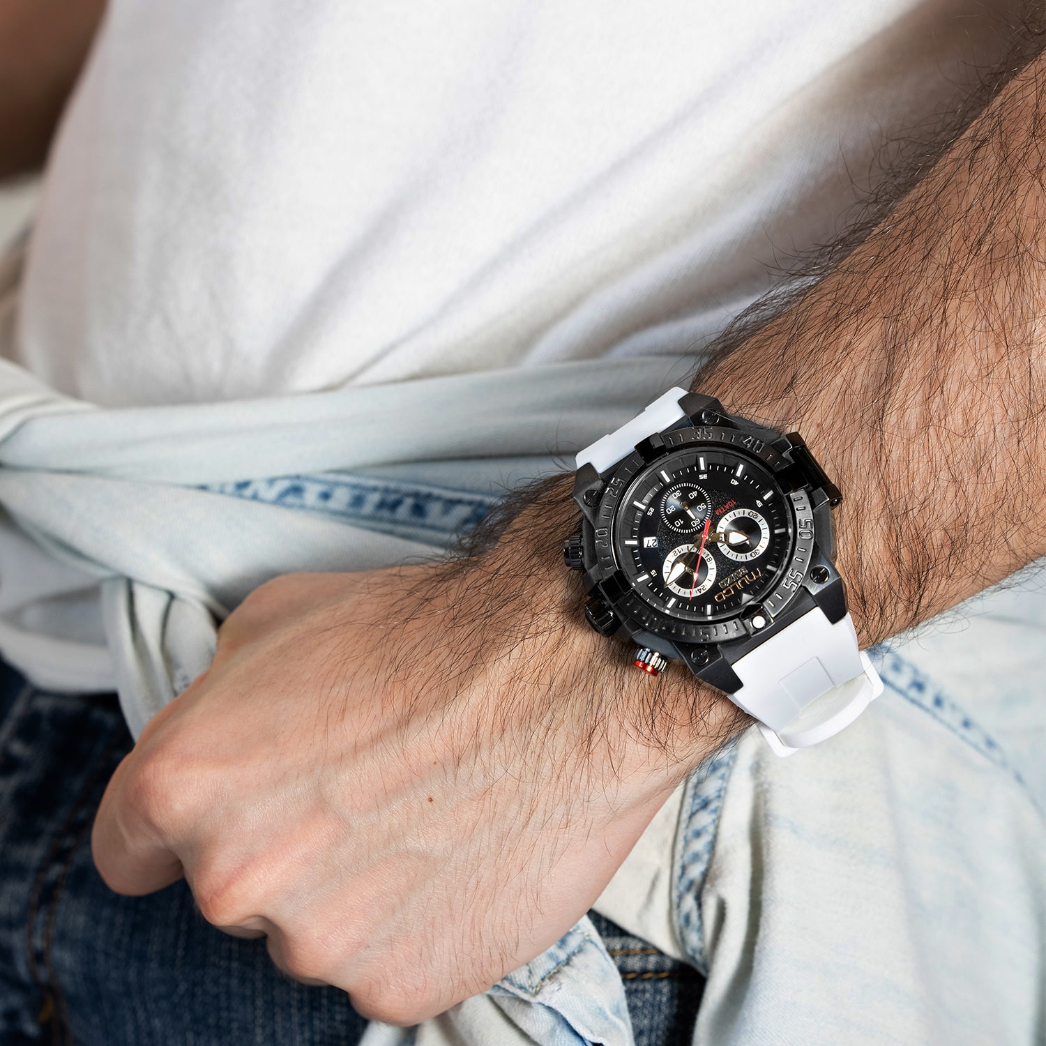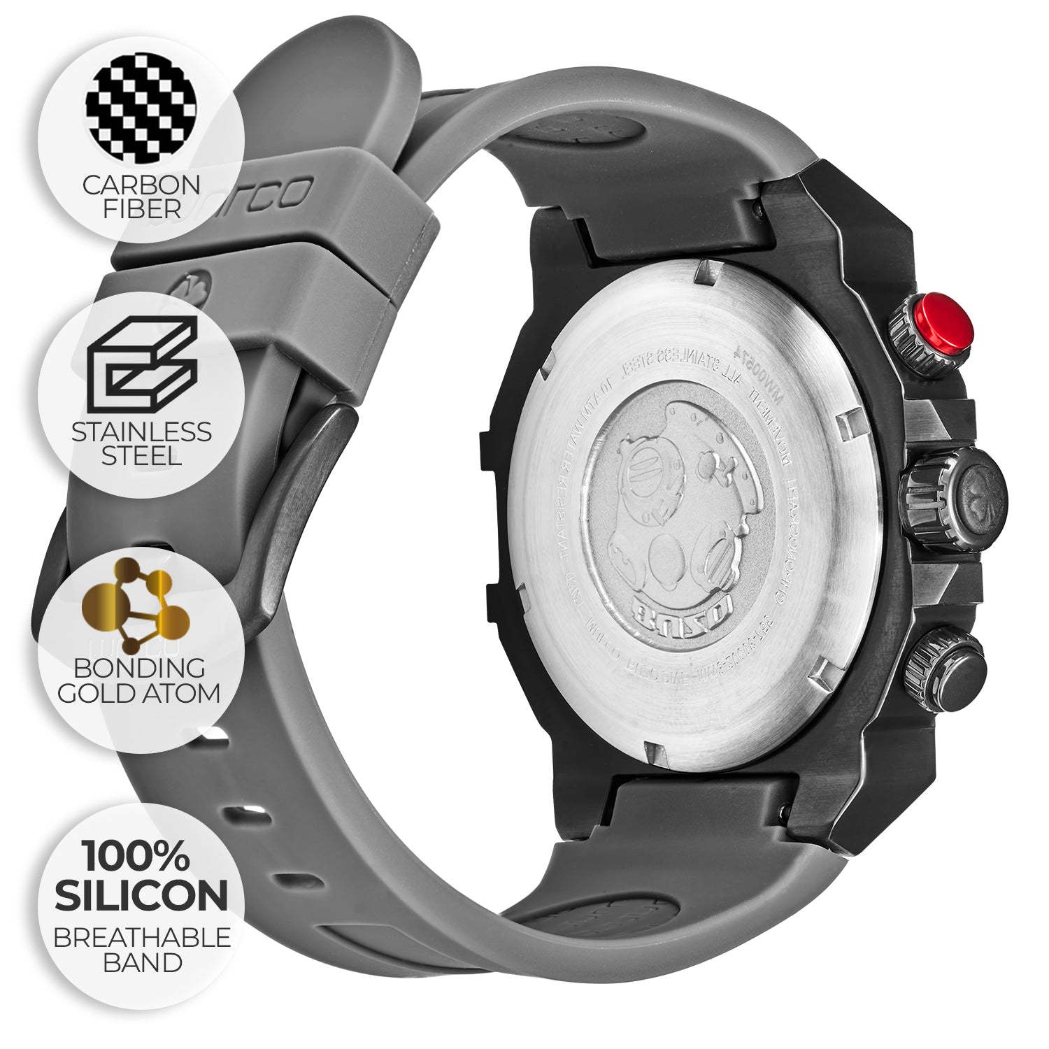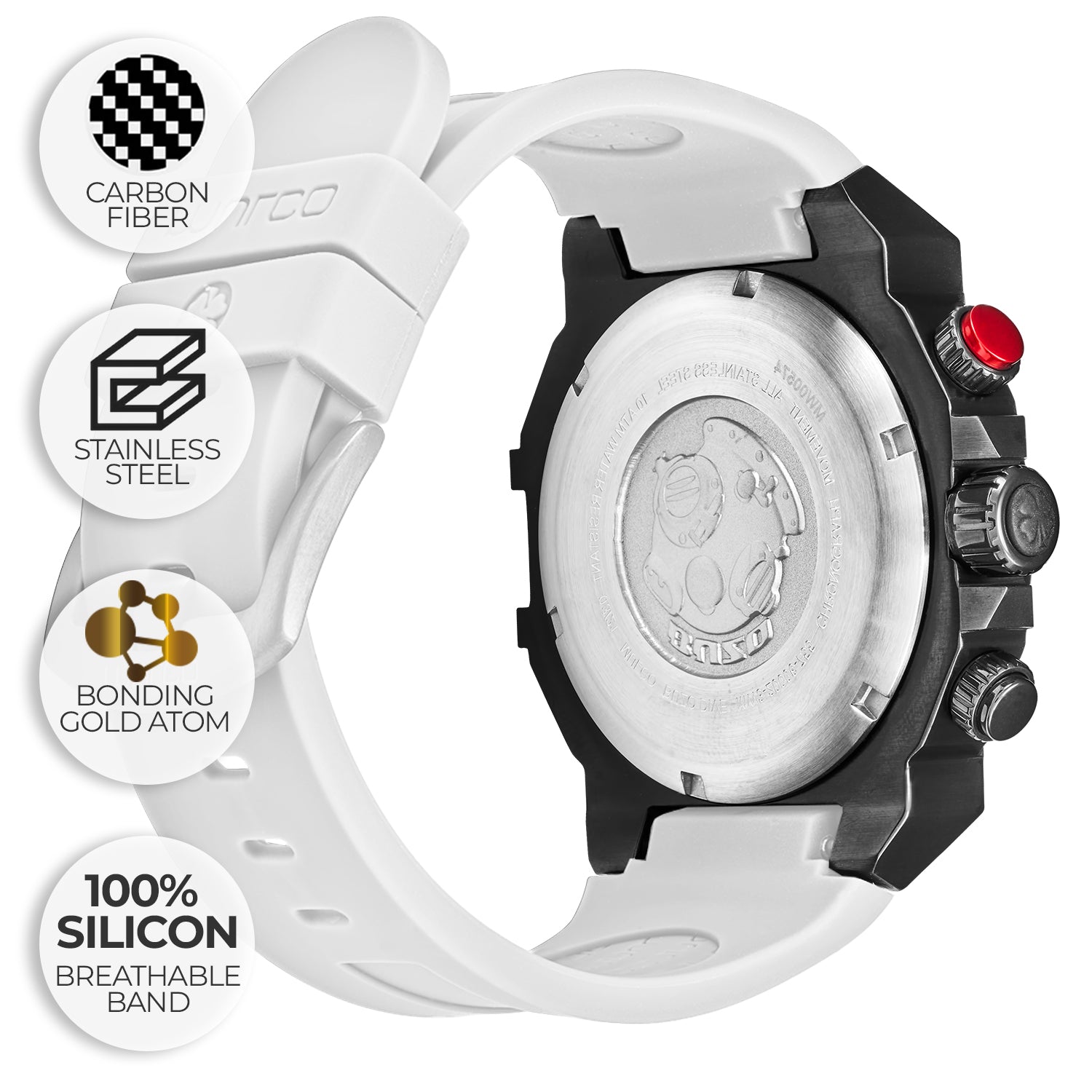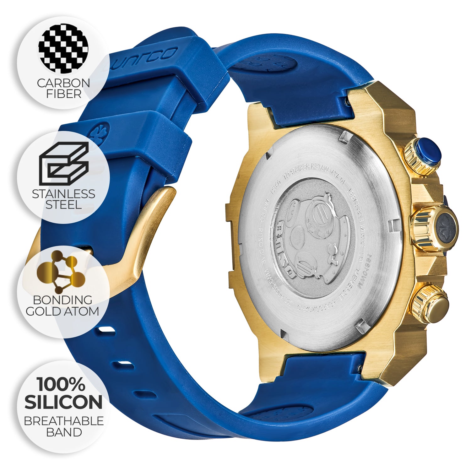 Con correa de silicona, está diseñado para satisfacer las necesidades de los buceadores con un estilo elegante y aventurero. Con una resistencia al agua de 10 ATM, estos relojes con movimiento cronógrafo son ideales para tus aventuras acuáticas