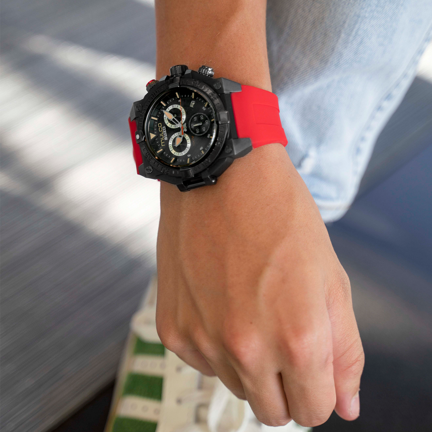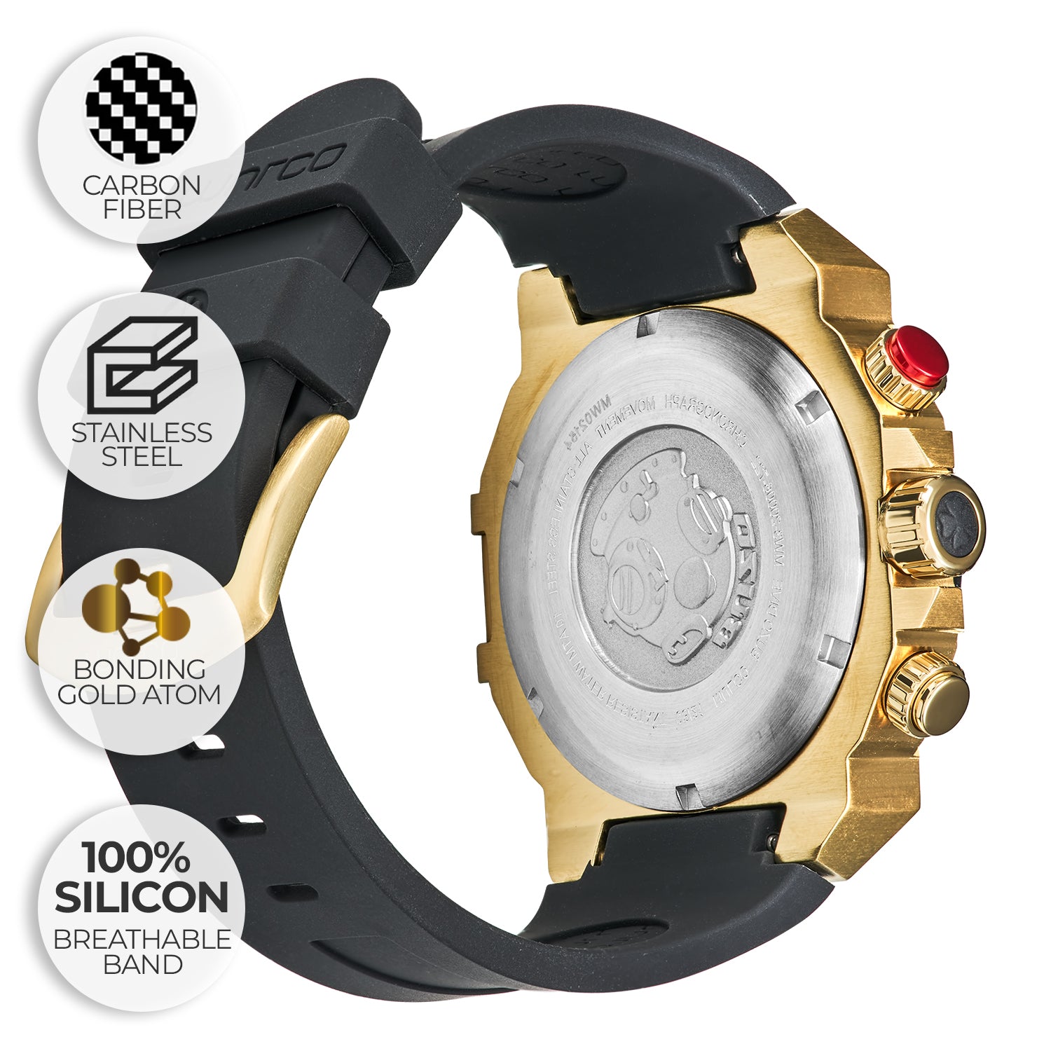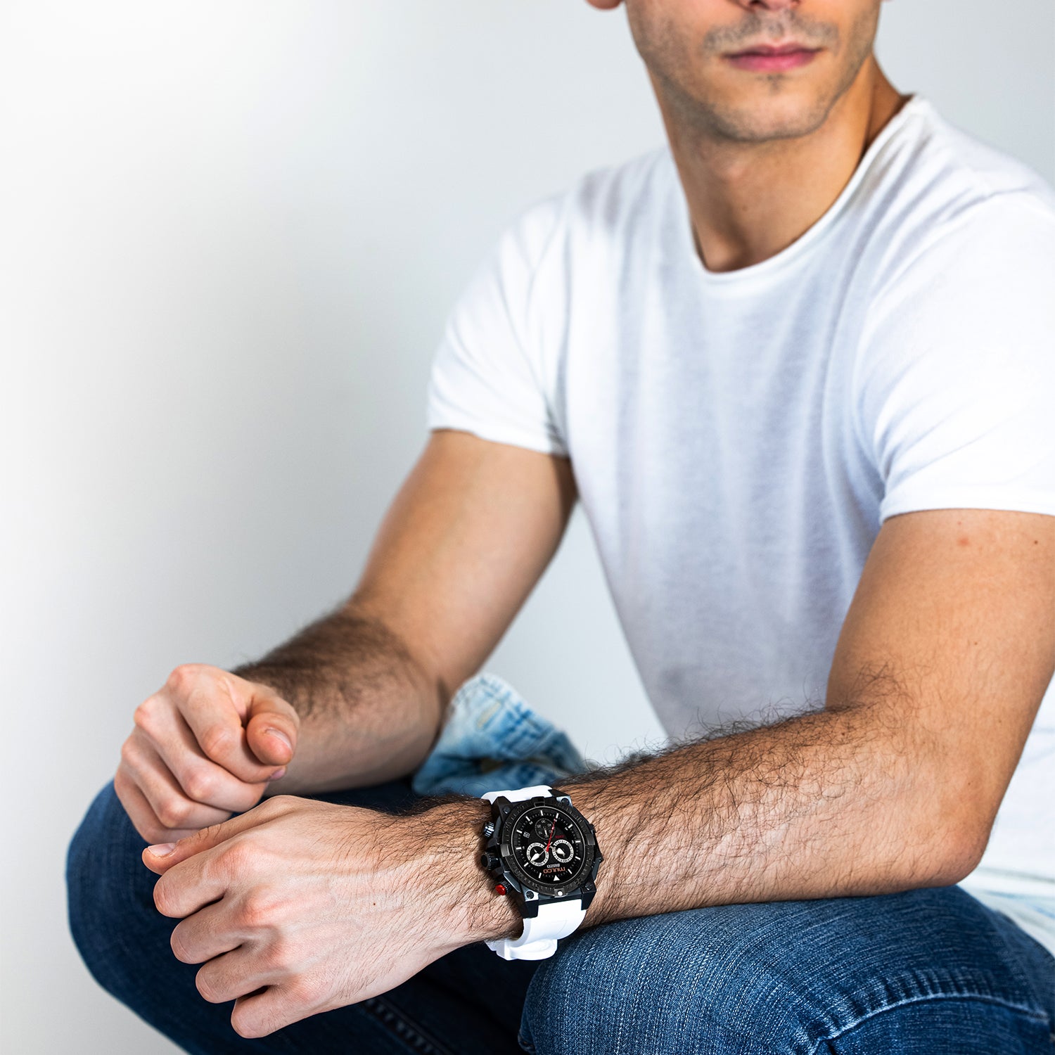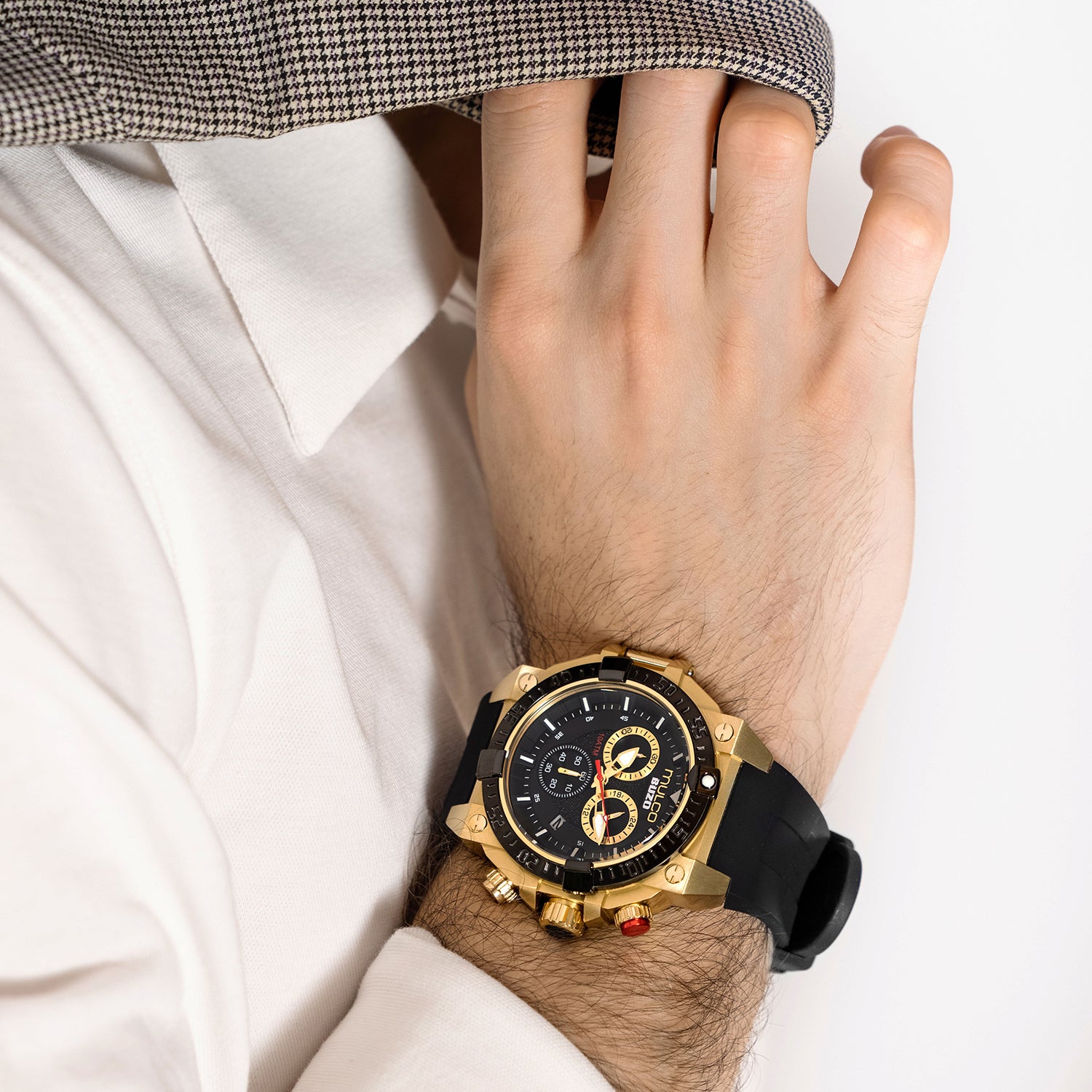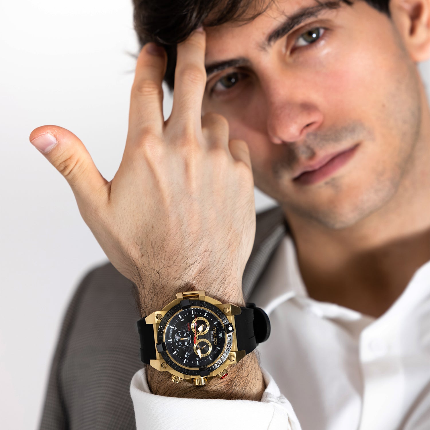 Con correa de silicona, está diseñado para satisfacer las necesidades de los buceadores con un estilo elegante y aventurero. Con una resistencia al agua de 10 ATM, estos relojes con movimiento cronógrafo son ideales para tus aventuras acuáticas