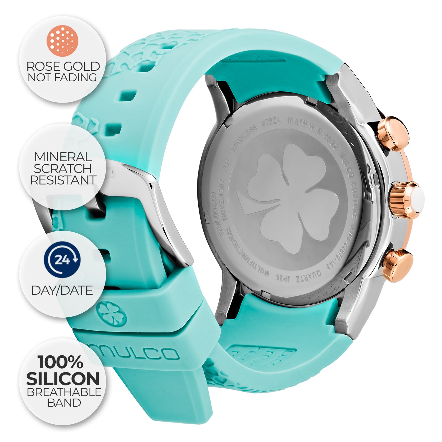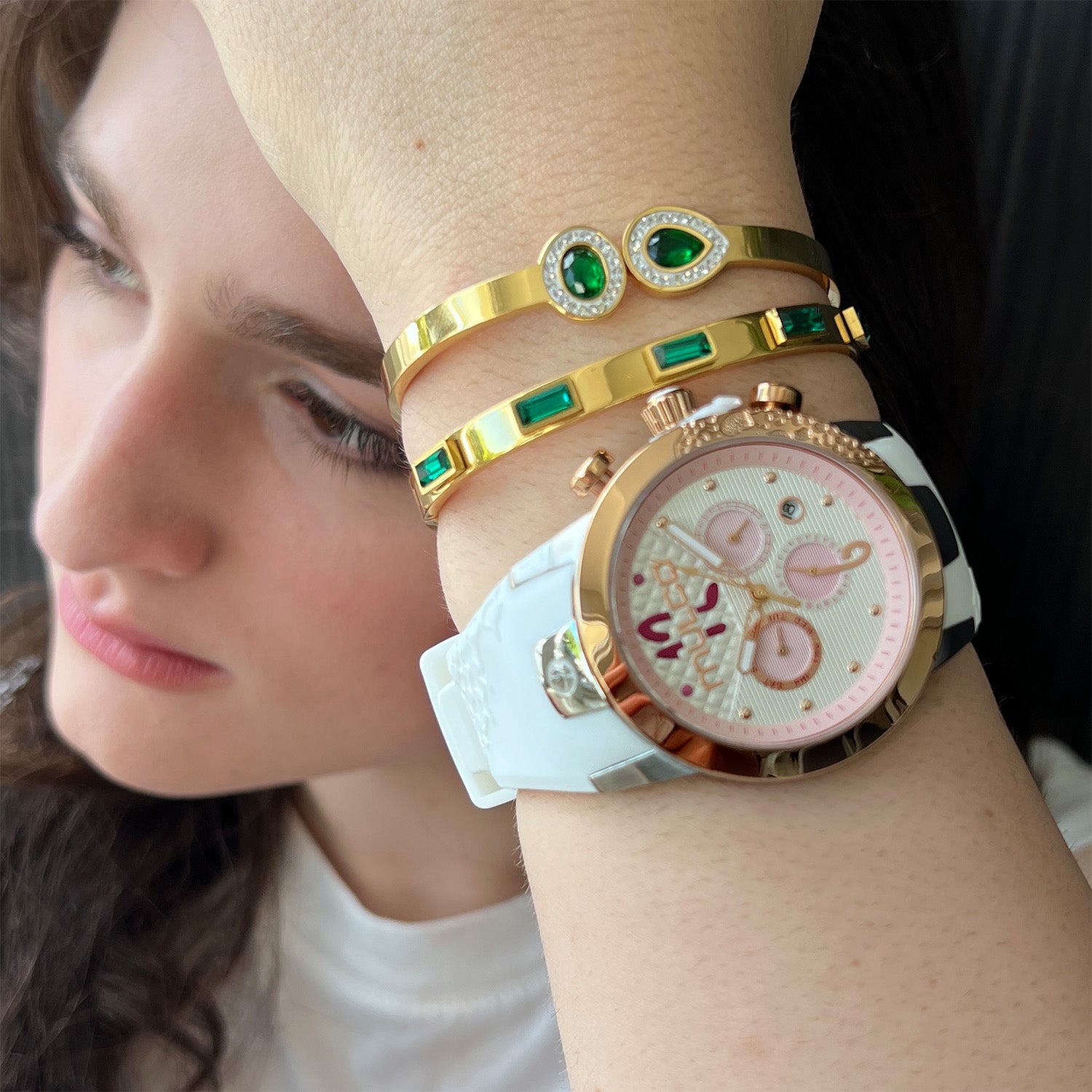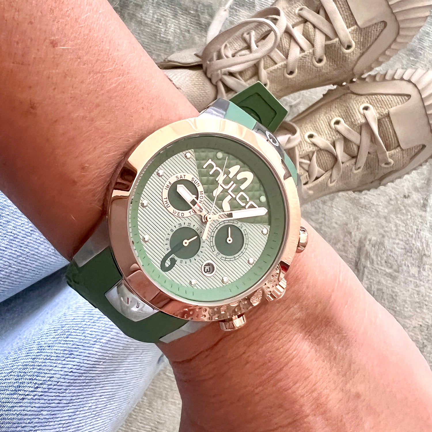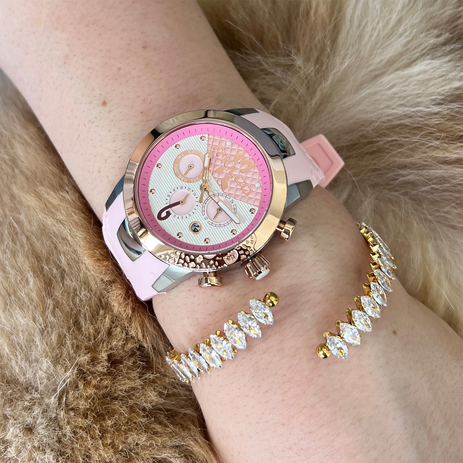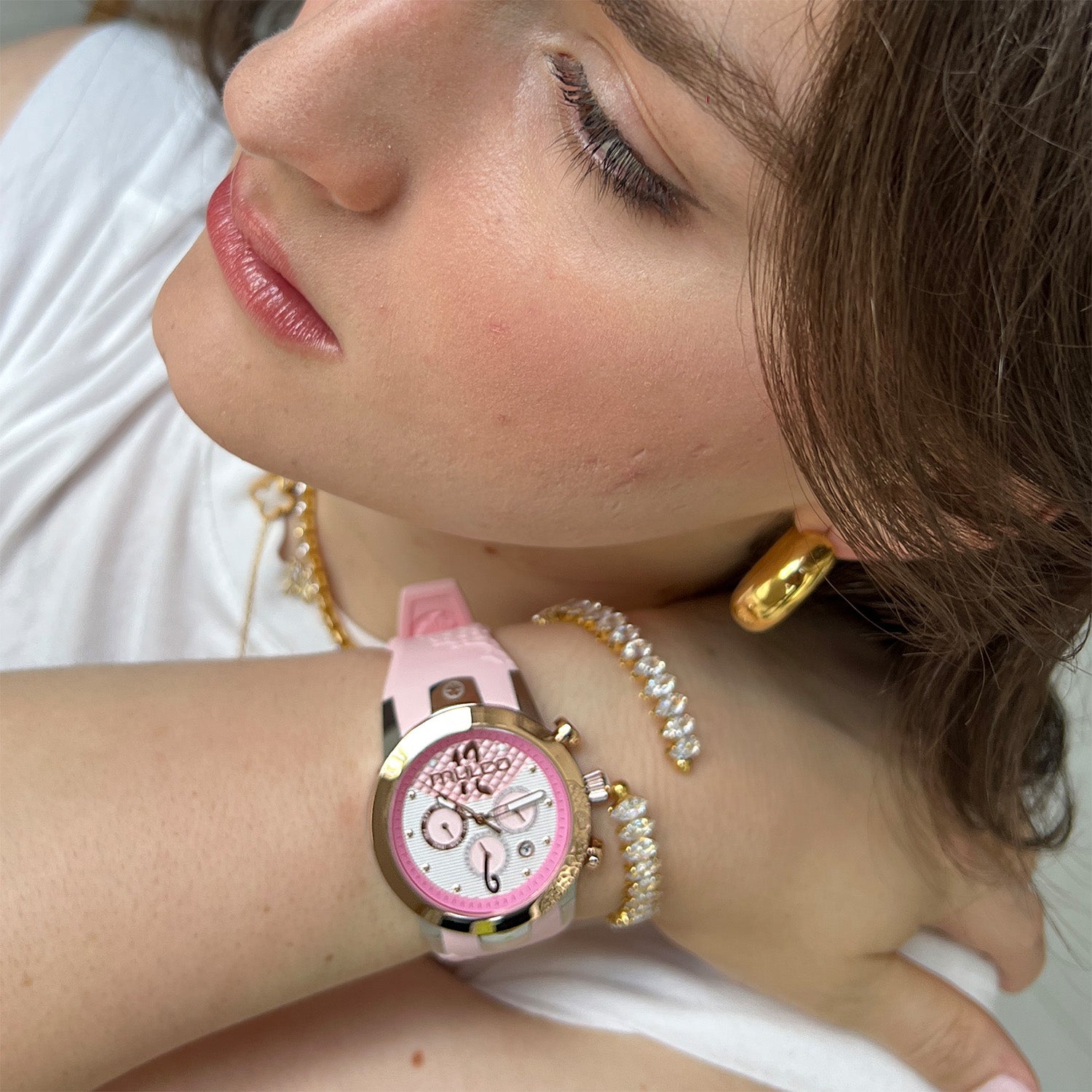 Presentamos el nuevo Mulco Lady D, un reloj sofisticado con correa de silicona resistente y elegante. Su diseño combina tweed, bordados, perlas y detalles en oro rosado, convirtiéndolo en la pieza ideal para el uso diario.
