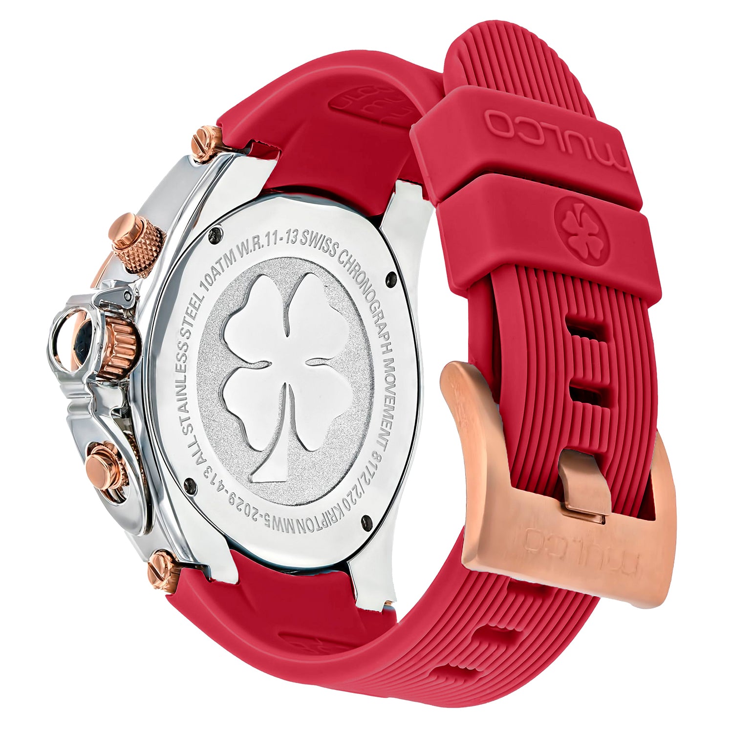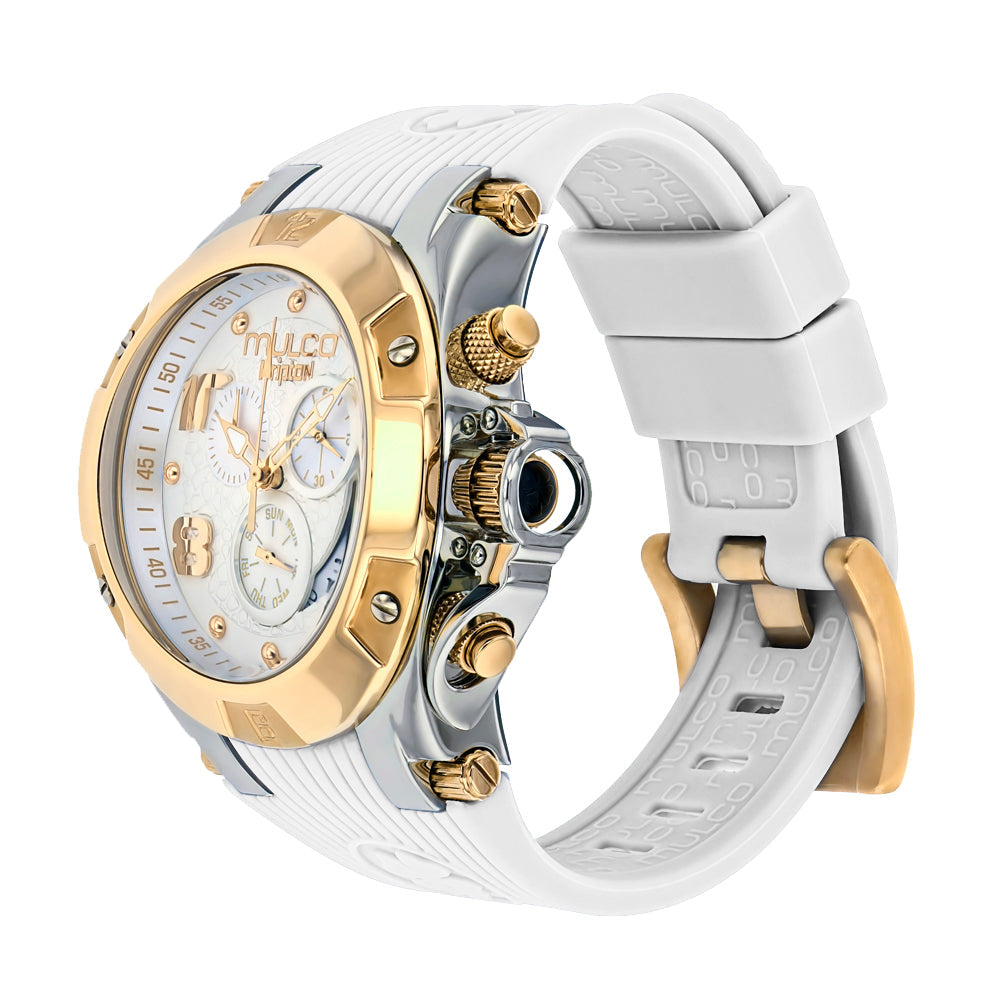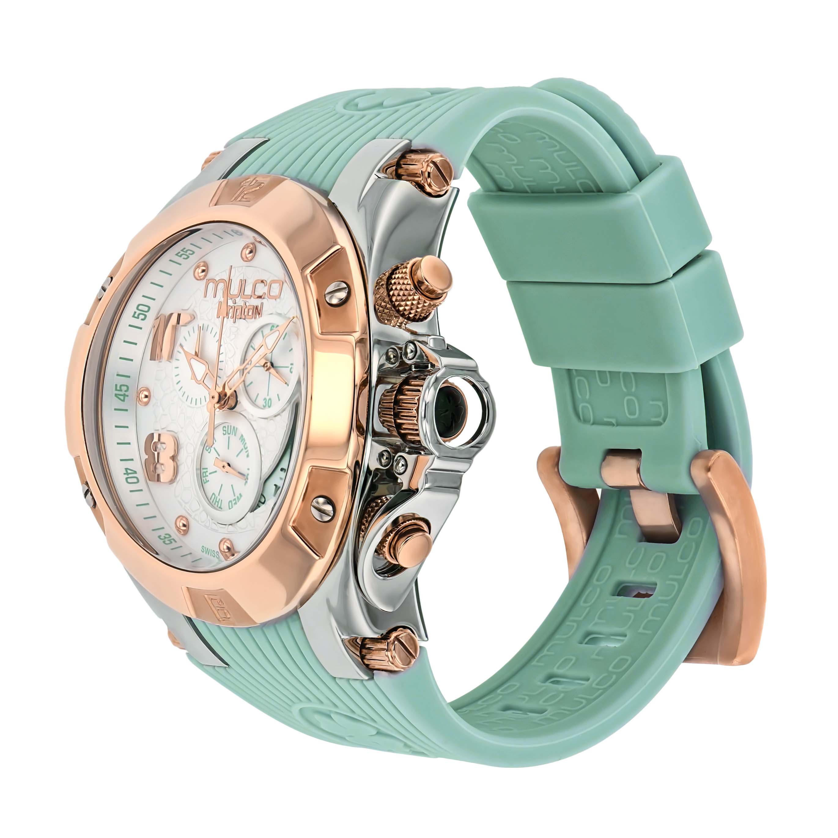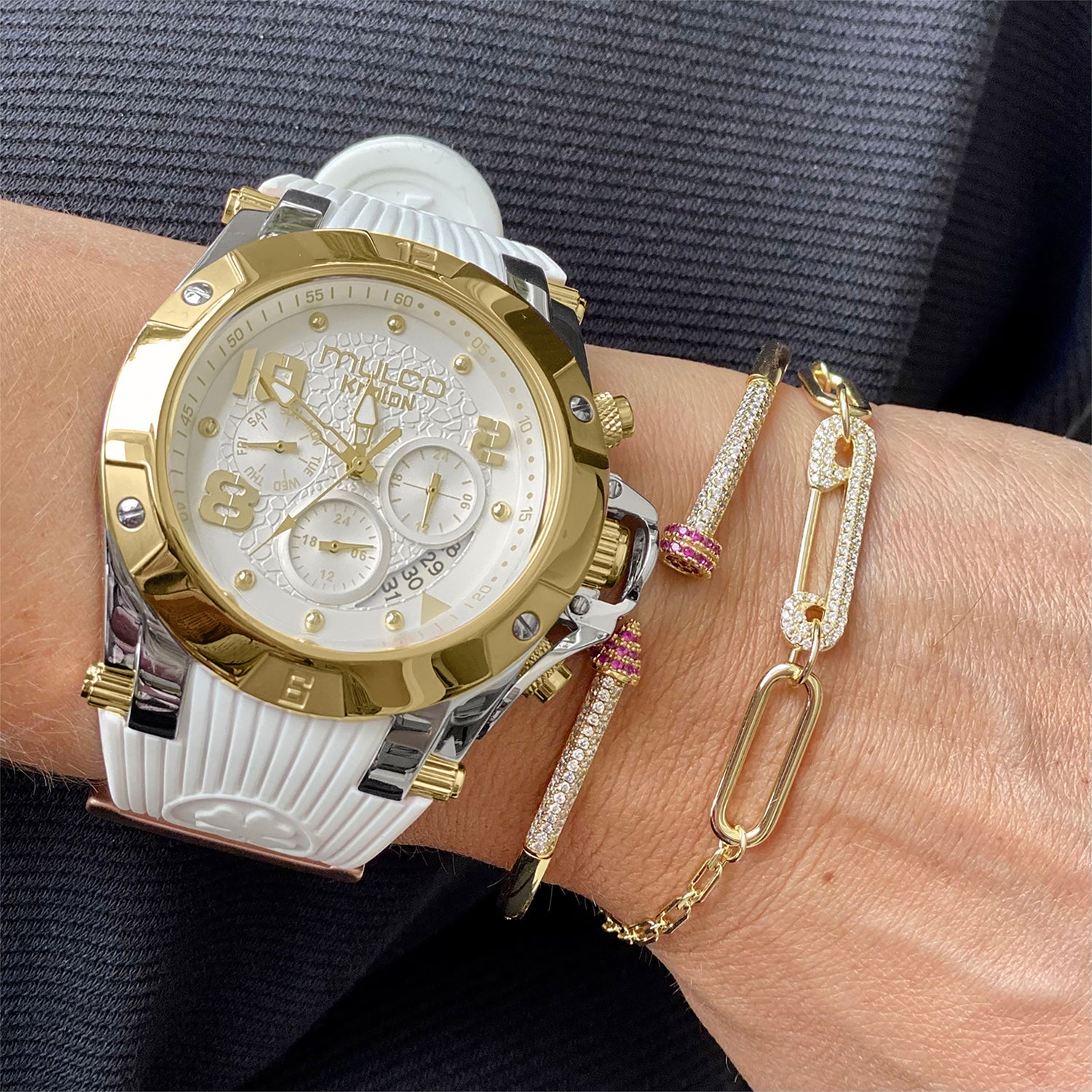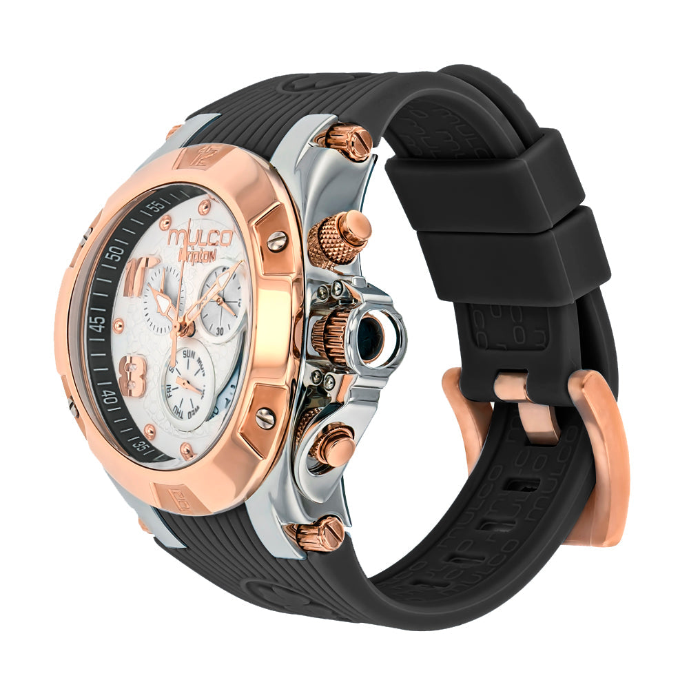 Su esfera con acabado perlado y detalles en oro rosa resiste el uso diario gracias a un proceso de ionizado. Además, es resistente al agua y está fabricado en acero inoxidable. La correa de silicona te brinda comodidad y estilo para que puedas lucirla a diario.