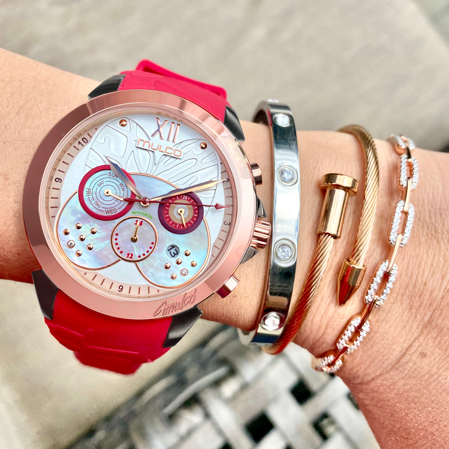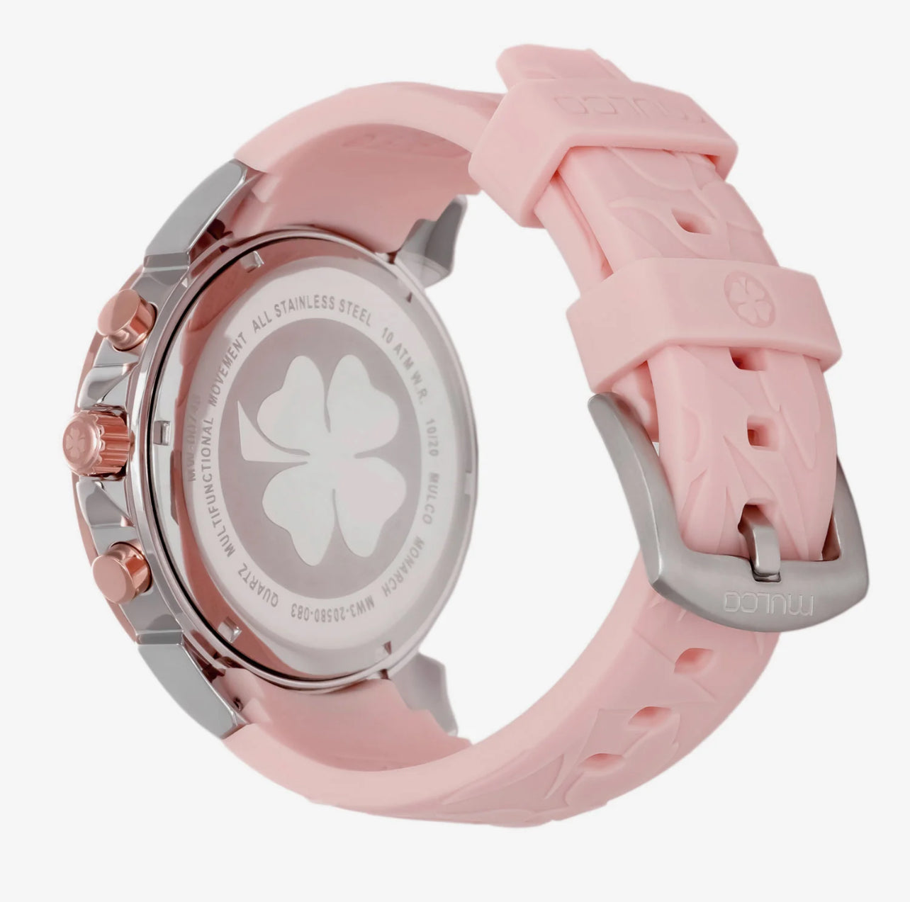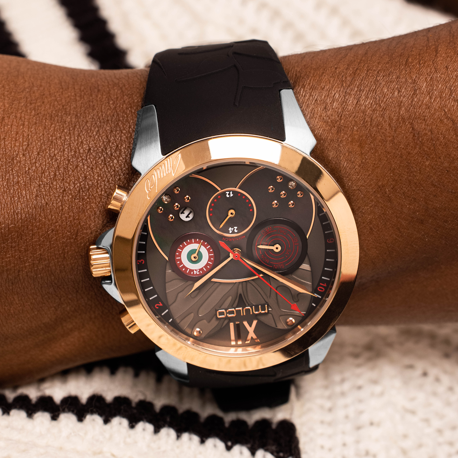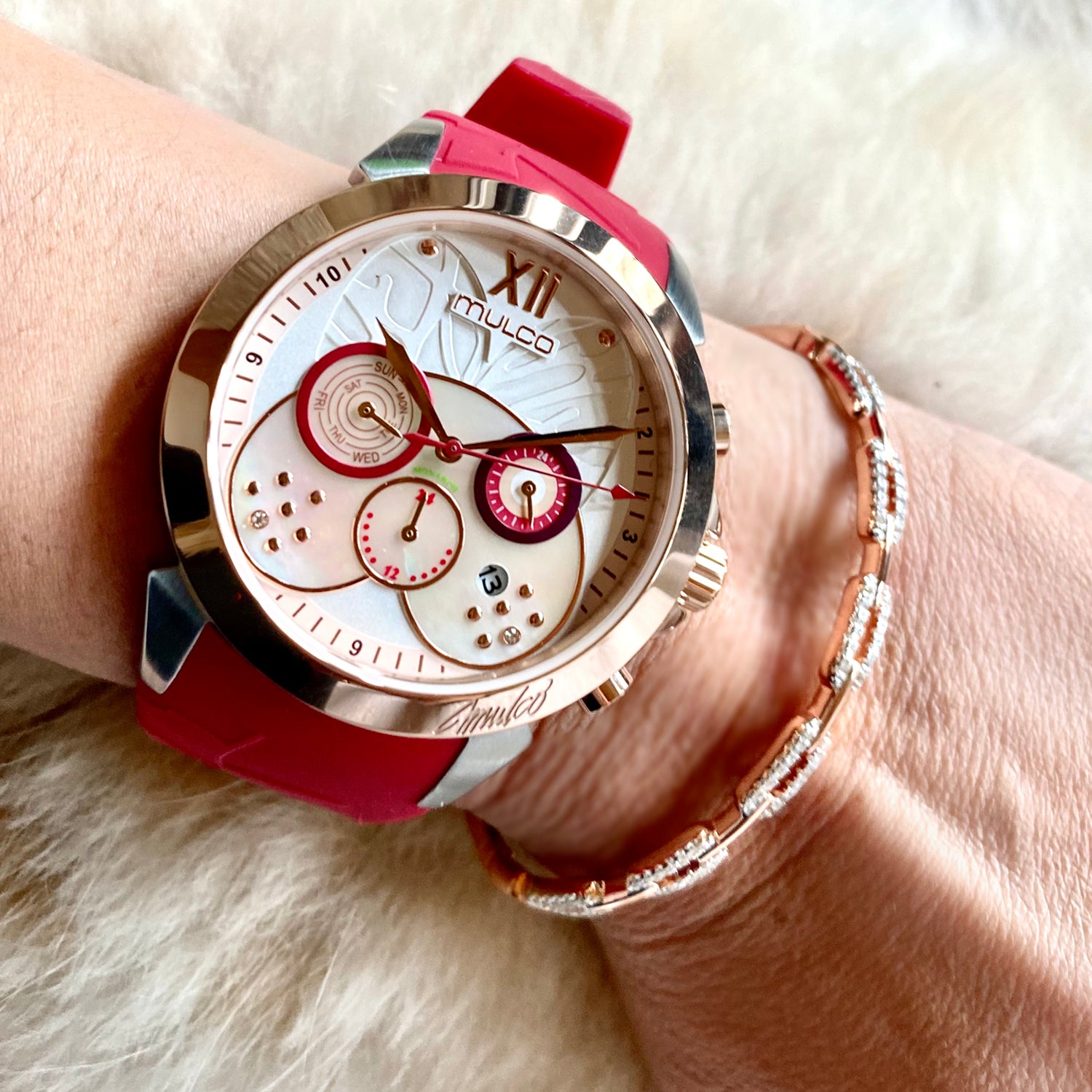 ¡Impresiona con Mulco Lush Monarch!, un reloj multifuncional con un diseño sólido y un dial inspirado en mariposas imperiales. Resistente al agua hasta 100 metros.