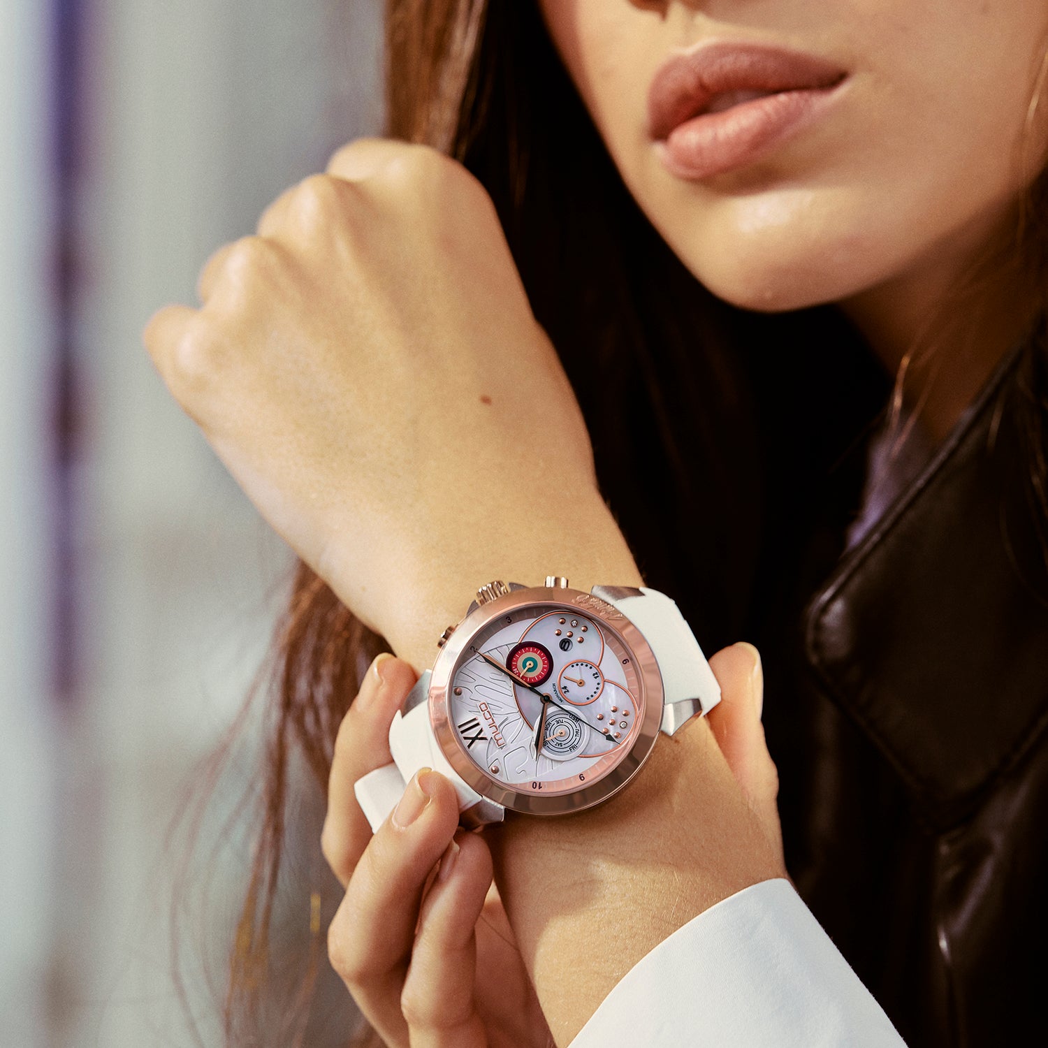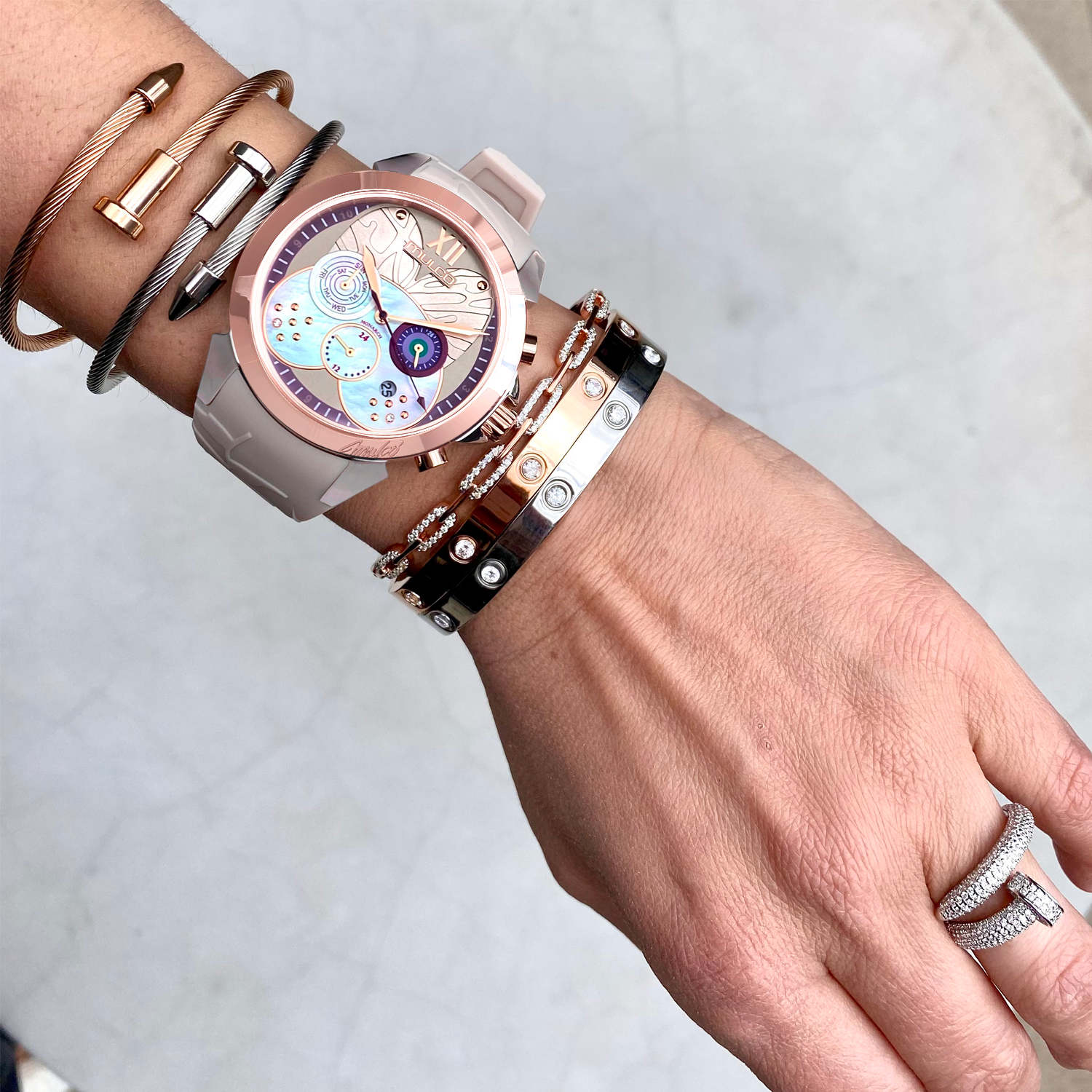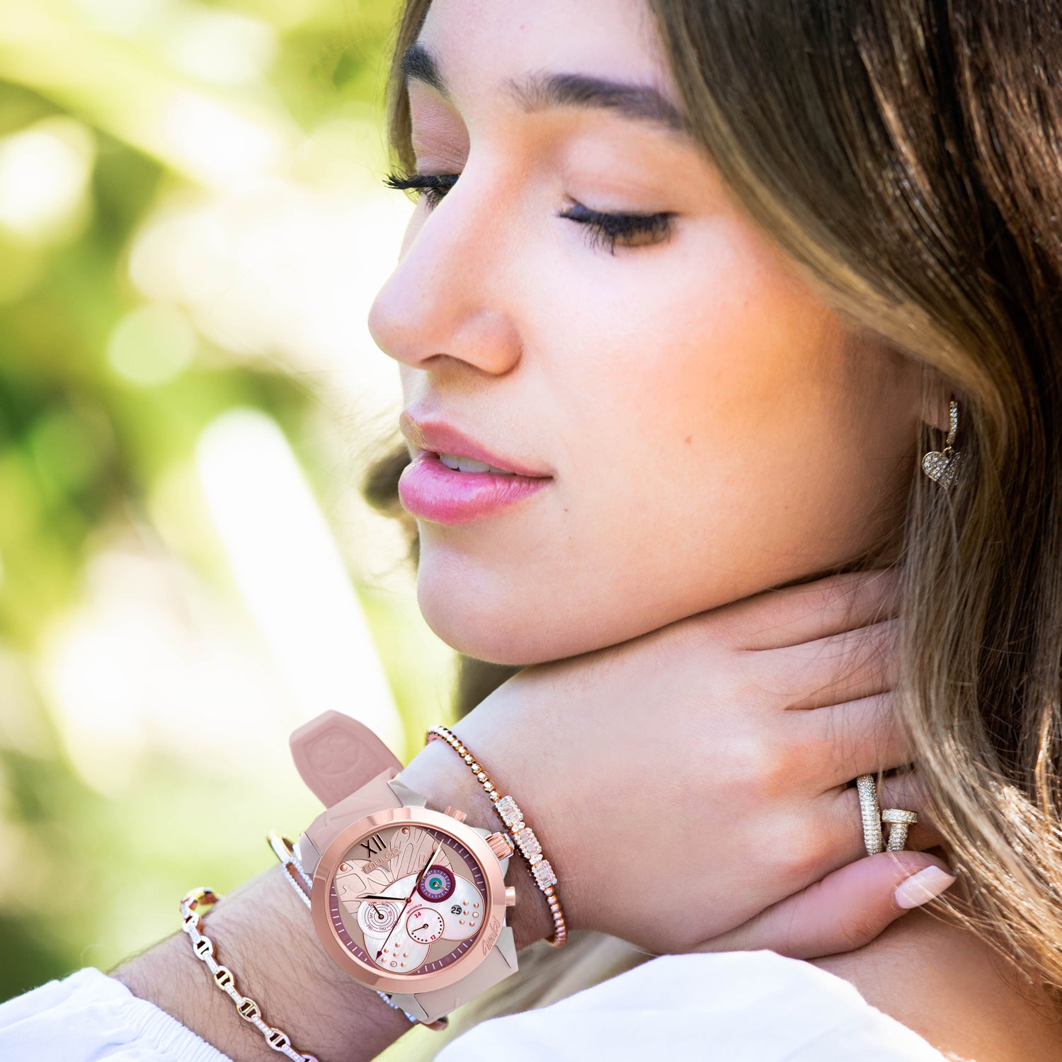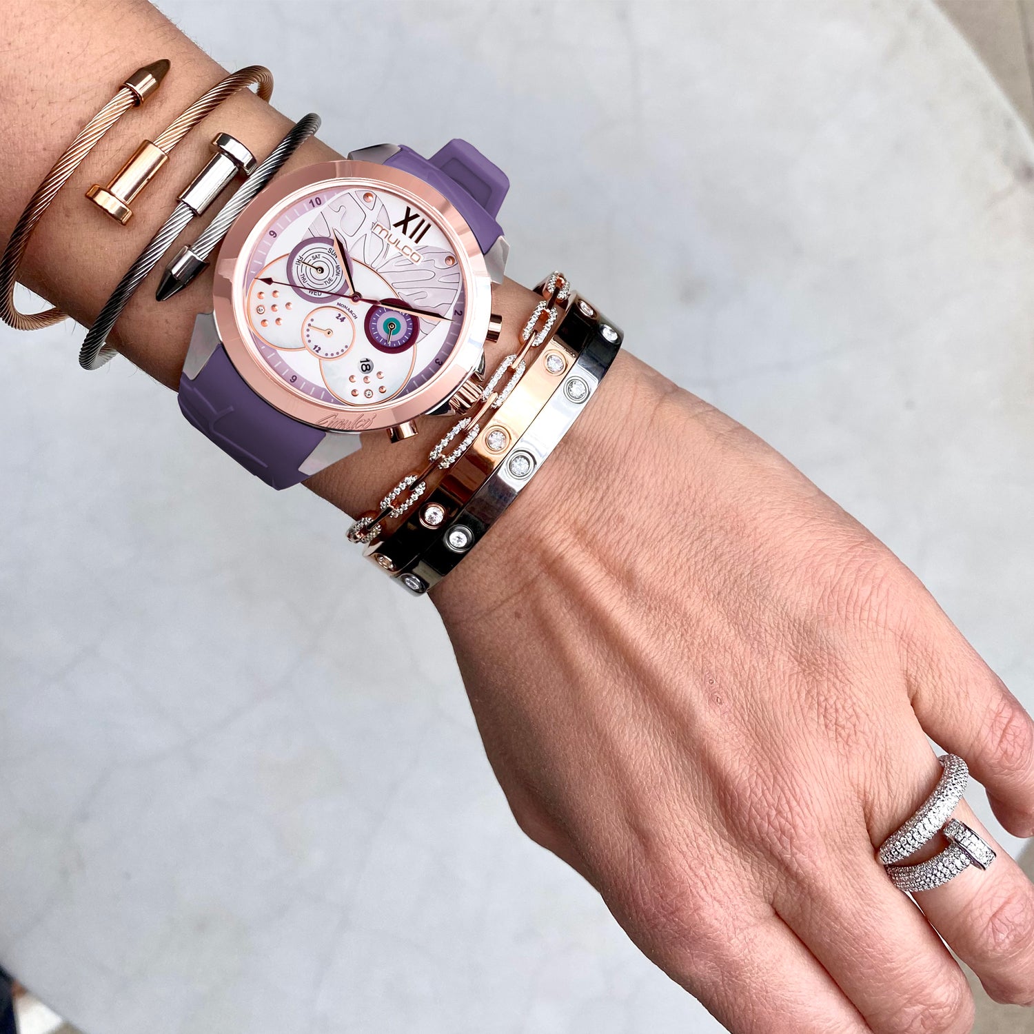 ¡Impresiona con Mulco Lush Monarch!, un reloj multifuncional con un diseño sólido y un dial inspirado en mariposas imperiales. Resistente al agua hasta 100 metros.