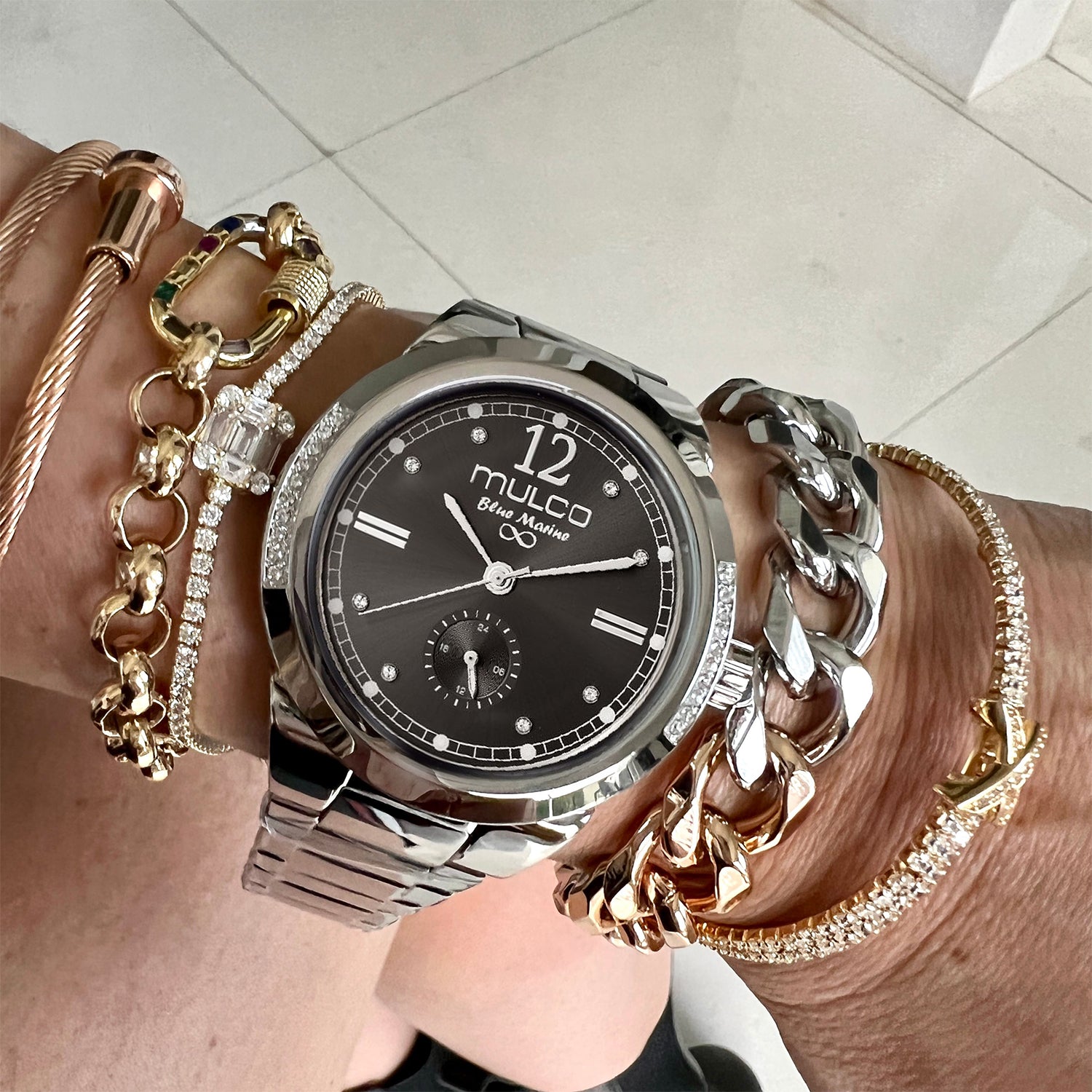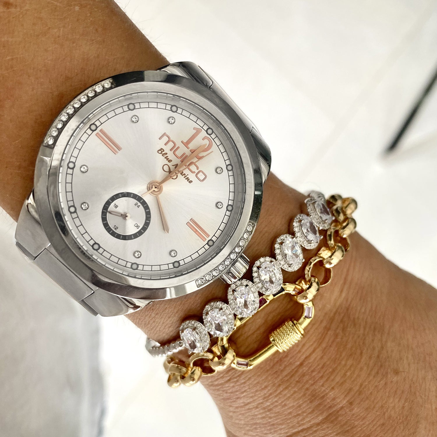 - Pantalla del reloj: Metal dial with Swarovski stones accents.