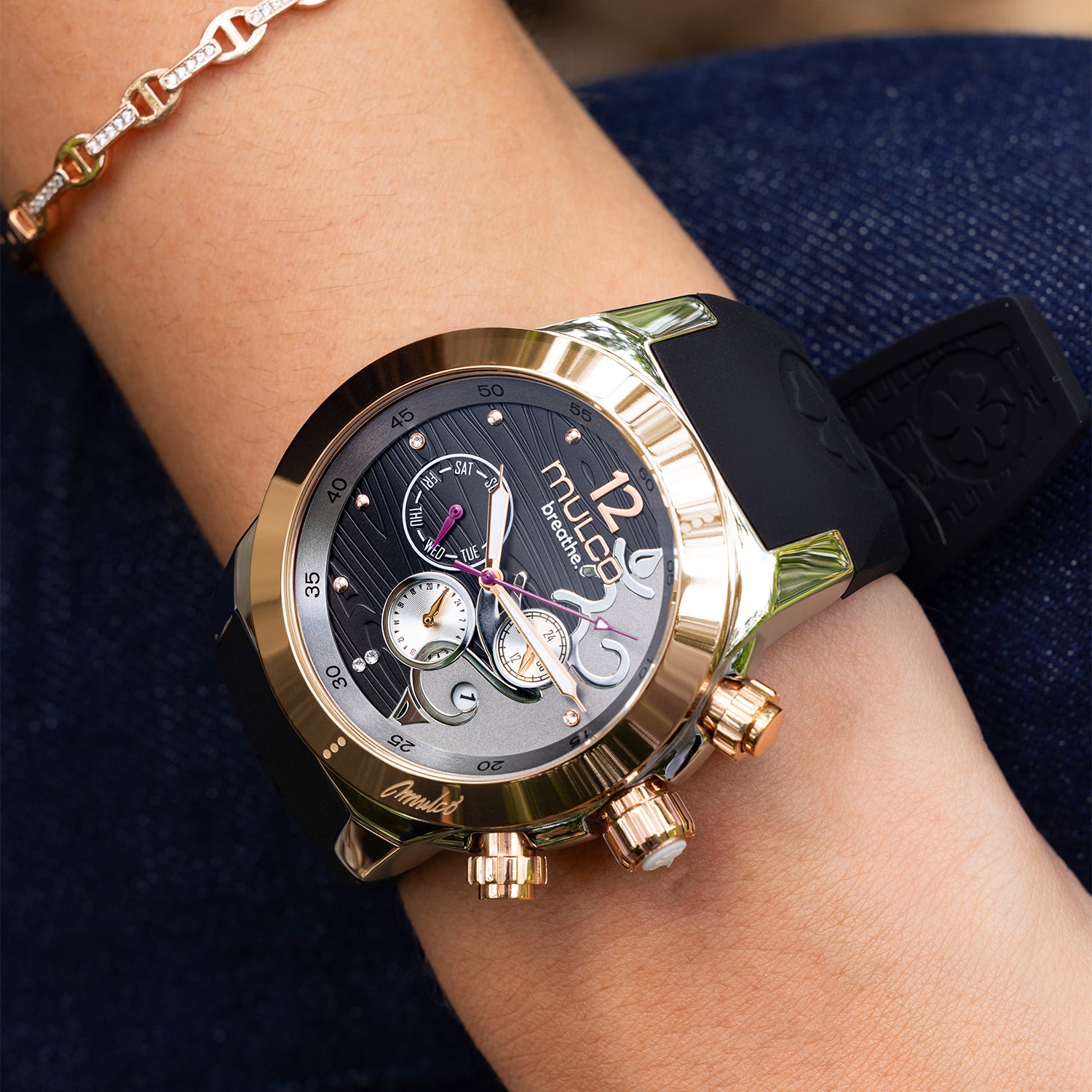 Pensando en la importancia de respirar y cómo conectamos con las emociones al hacerlo llega nuestra nuevo reloj Breathe. Toma un segundo y respira. Con acabados en madre perla, resistencia al agua y acero inoxidable viene a ti para hacerte vivir el dia dia de manera unica y consciente.