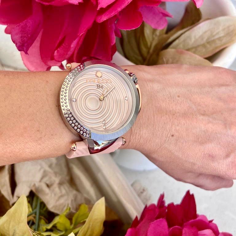 - Display: Patrón especial con acabado perlado, 4 piedras Swarovski y acentos en oro rosado.