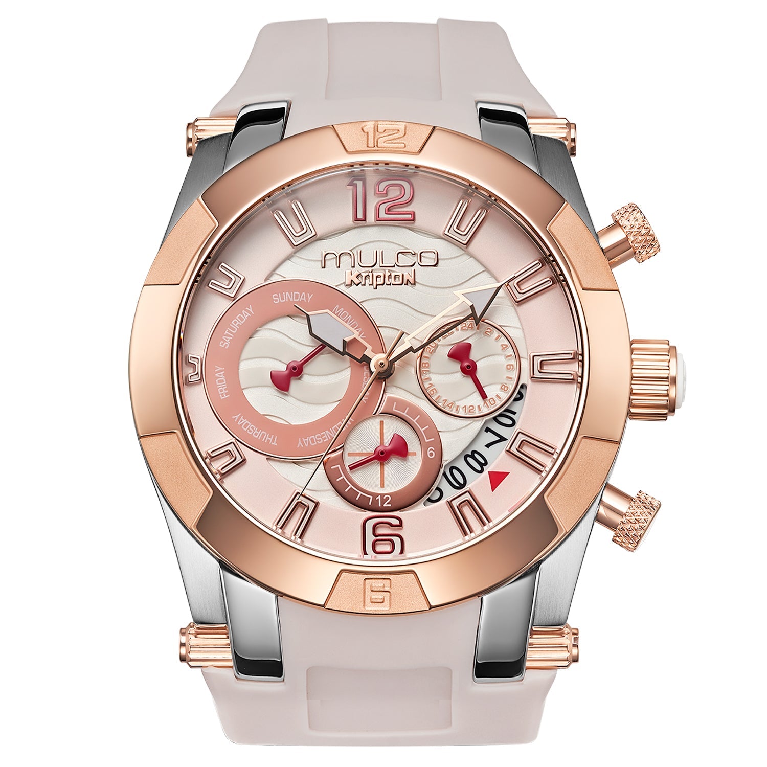 Esfera: Dial texturizado con detalles en oro rosa